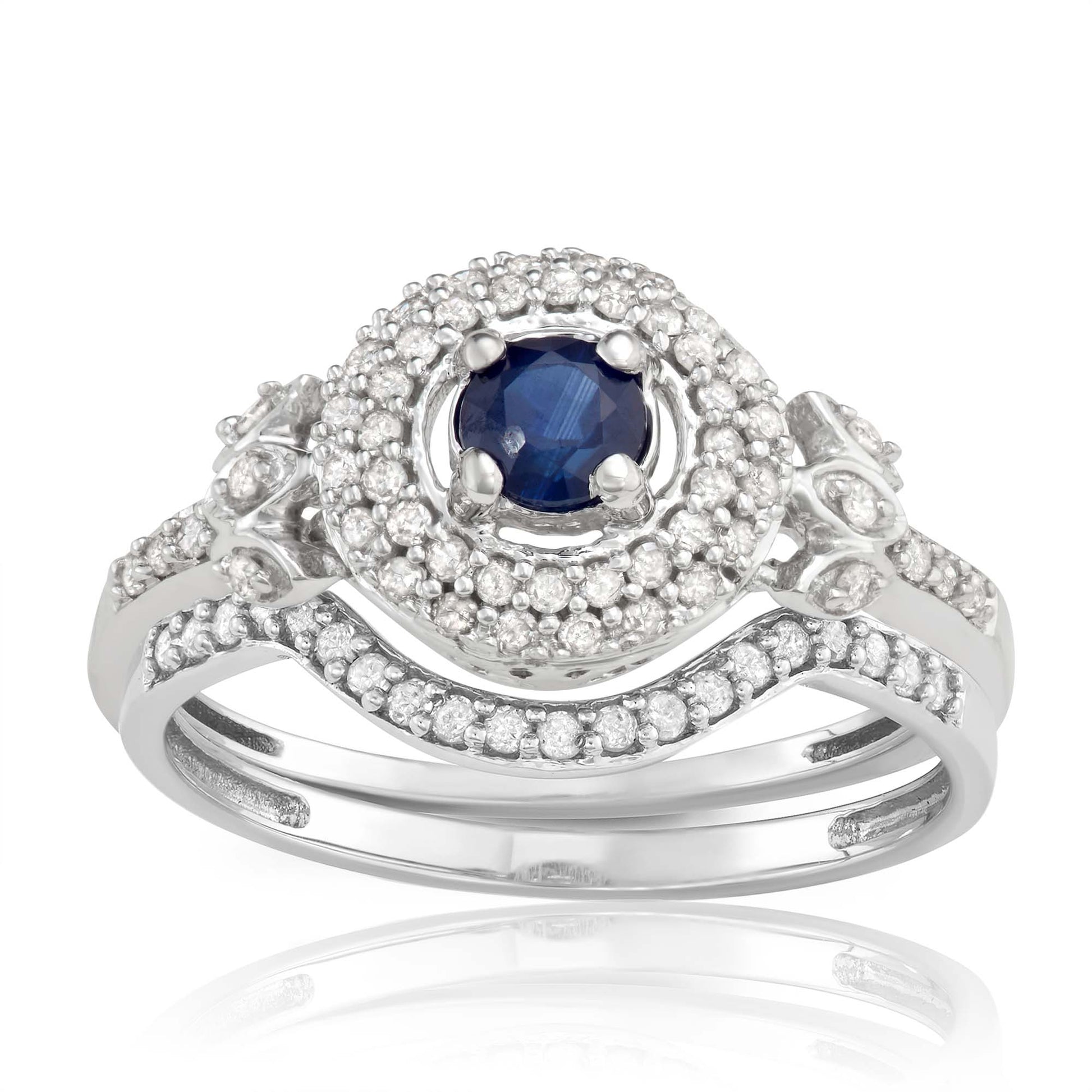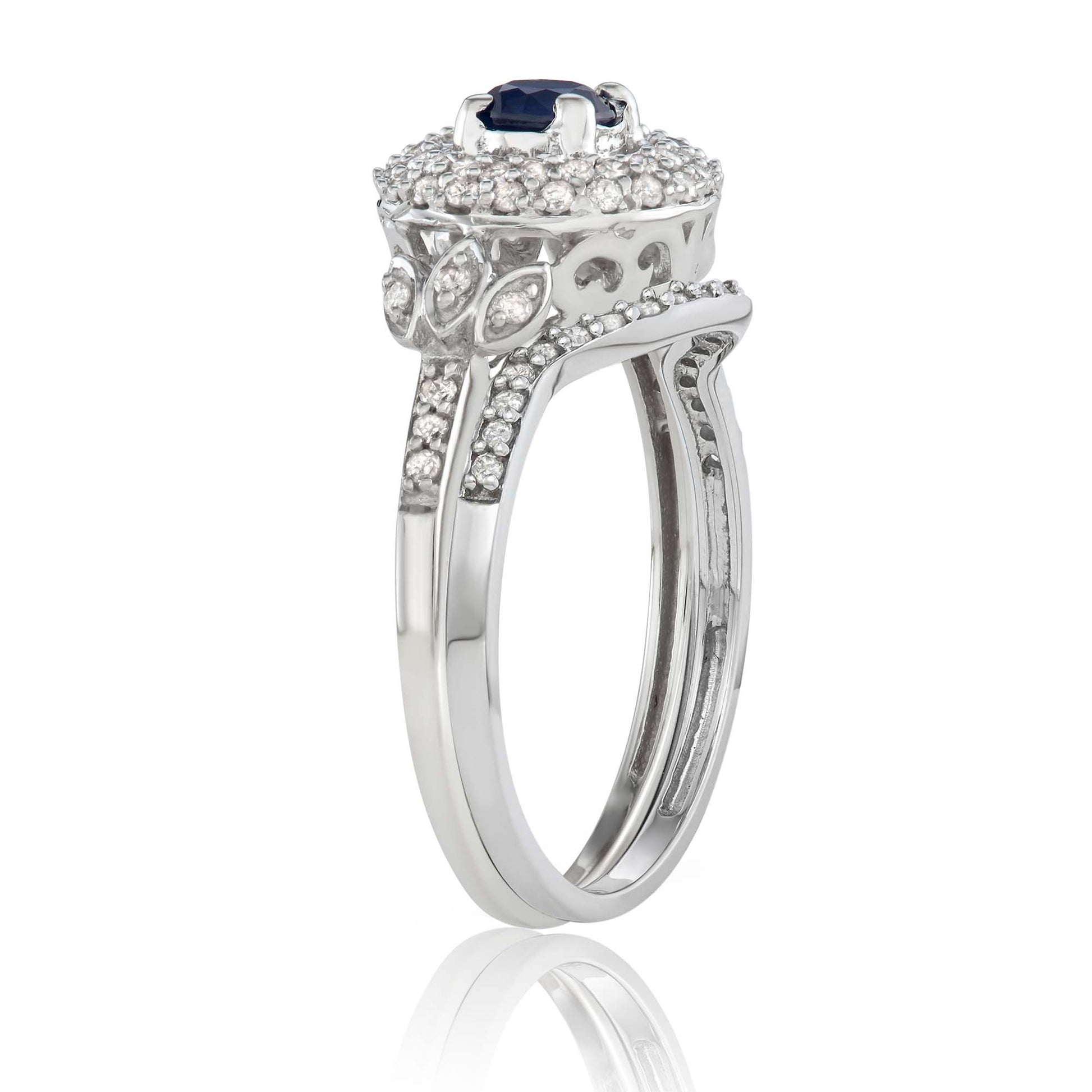 10K White Gold 0.61ct TW Sapphire and Diamond Bridal Set