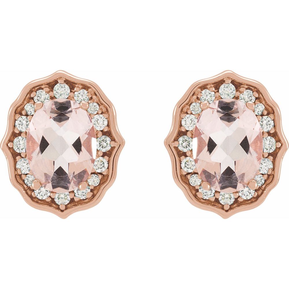 14k Rose Gold Natural Peach Morganite & 1/3 CTW Diamond Earrings