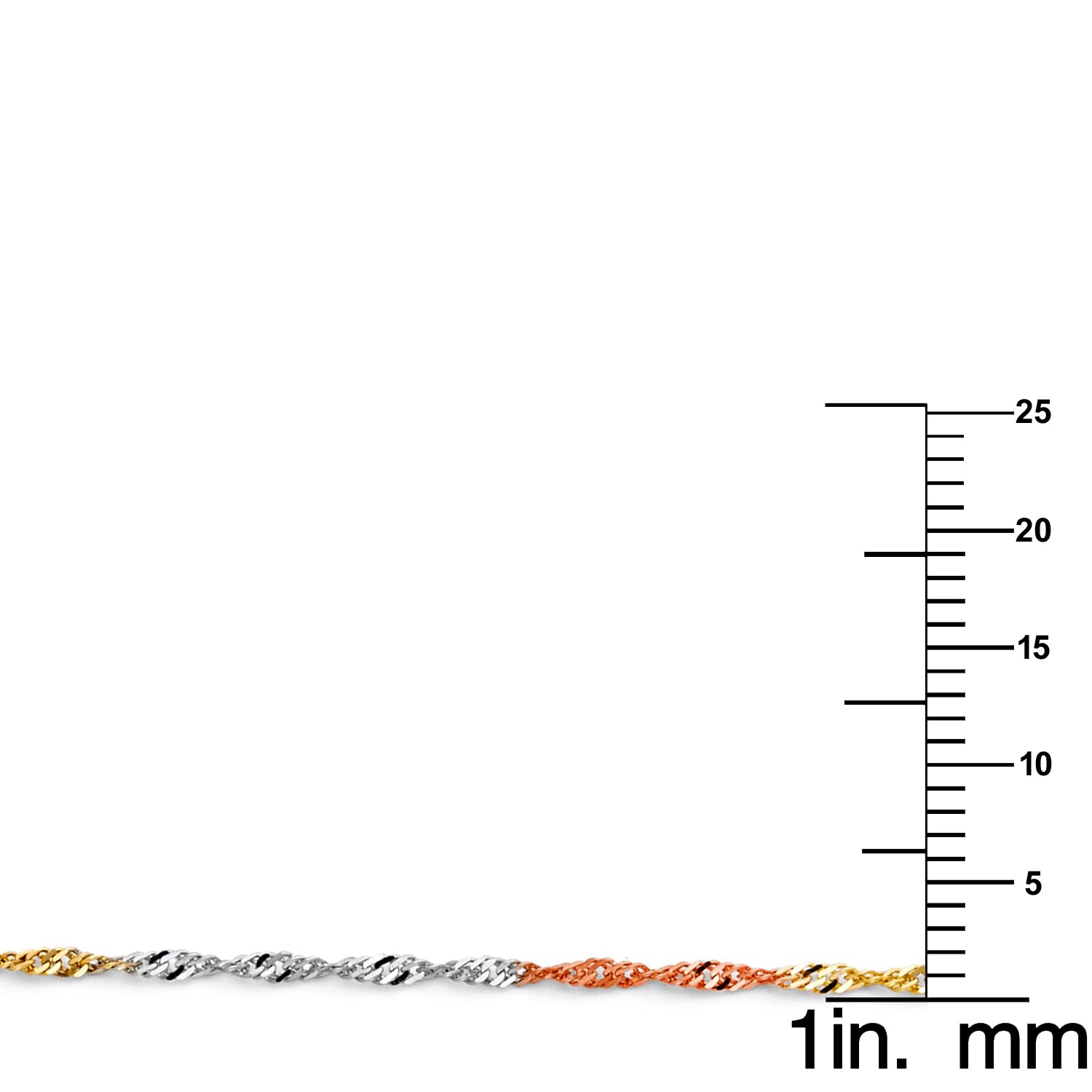 14k Tri-tone Gold 1.5mm Thin & Dainty Singapore Chain