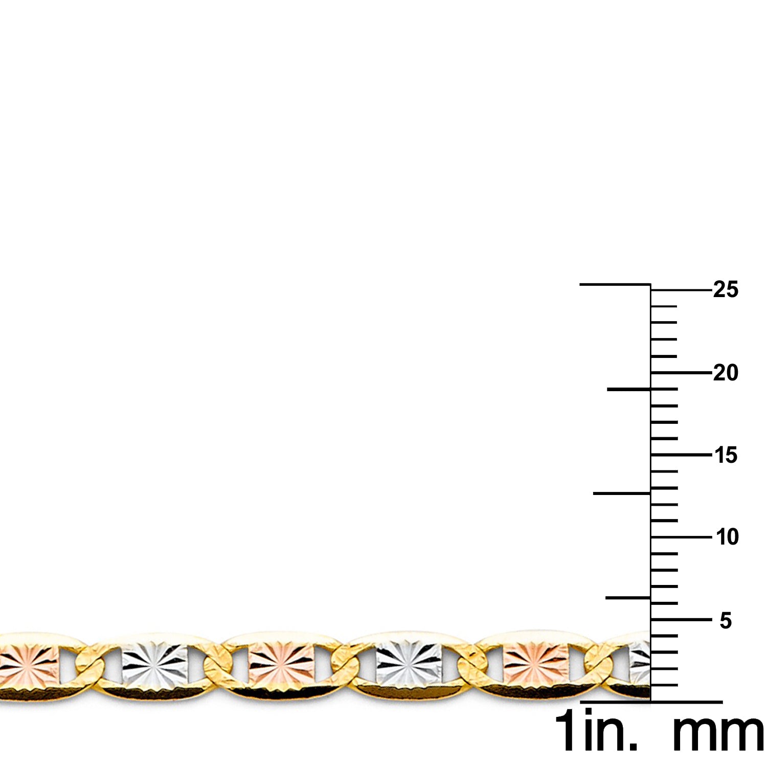 14k Tri-tone Gold 4.2mm Diamond-cut Star Valentino Unisex Chain Bracelet