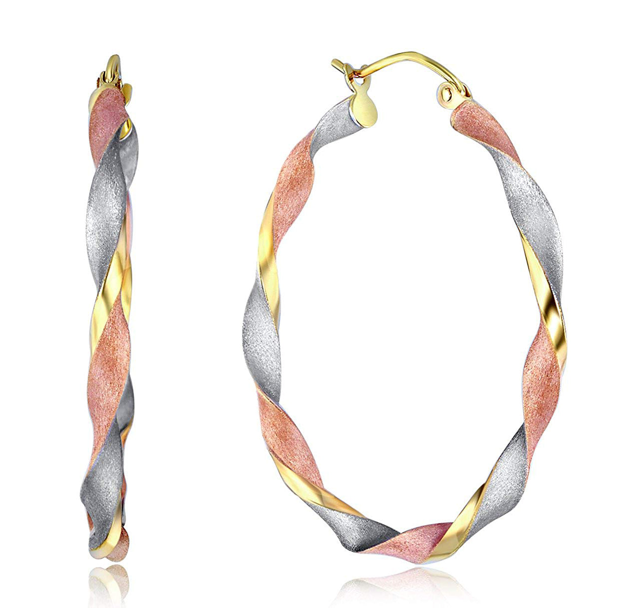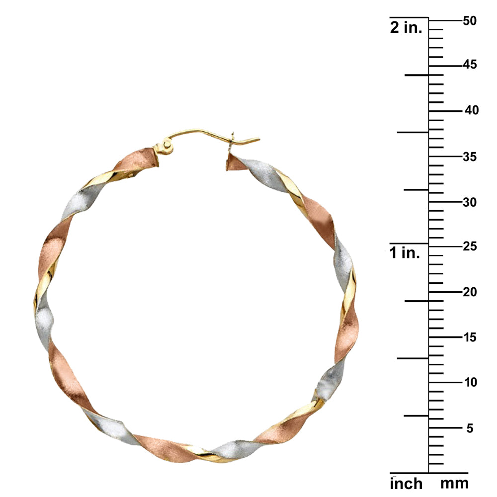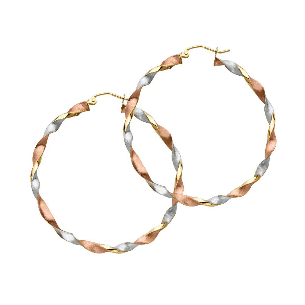 14k Tri-tone Gold Large Twisted Hoop Earrings (35-mm)