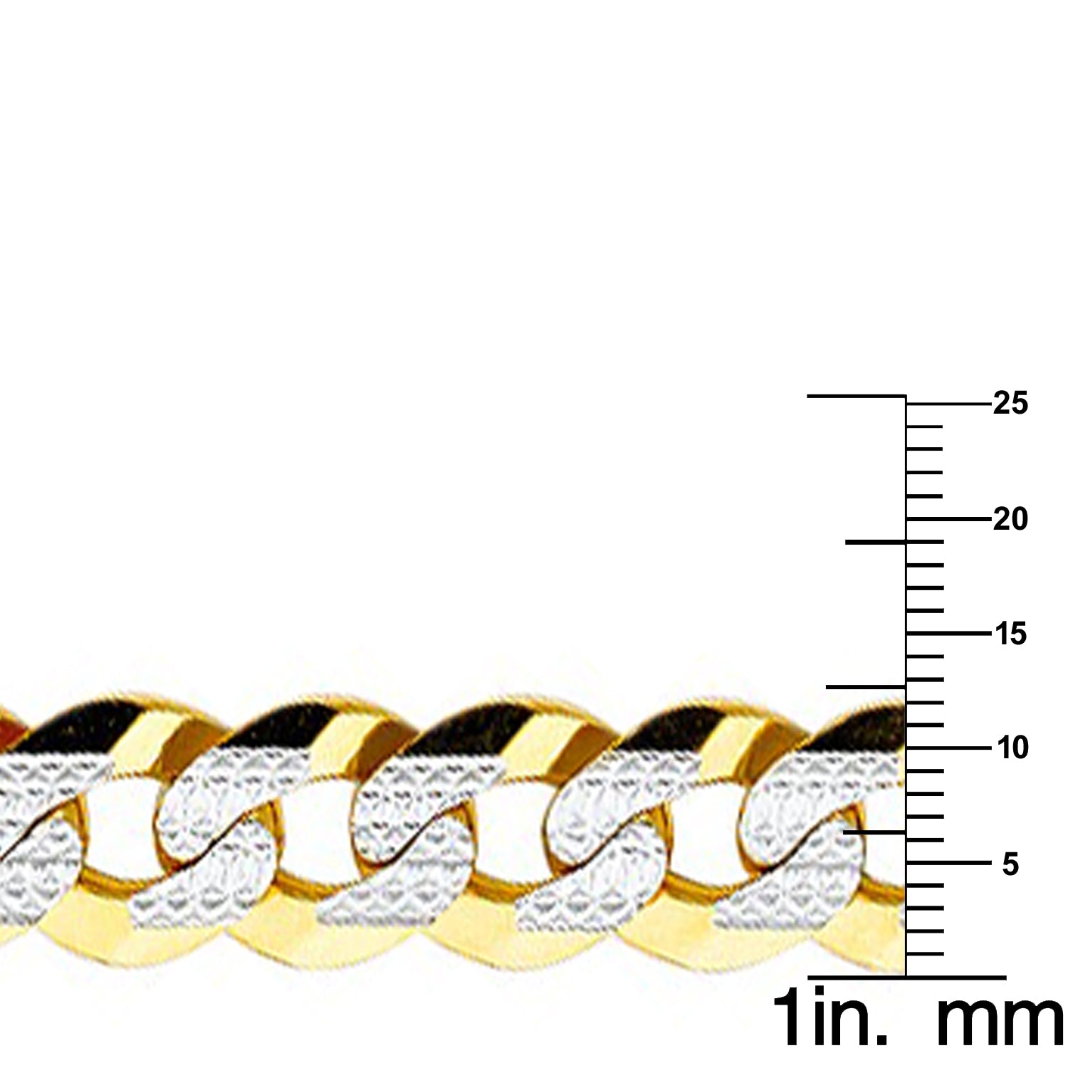 14k Two-tone Gold 12.2-mm Wide Regular White Pave Cuban Chain 8.5 inch Bracelet