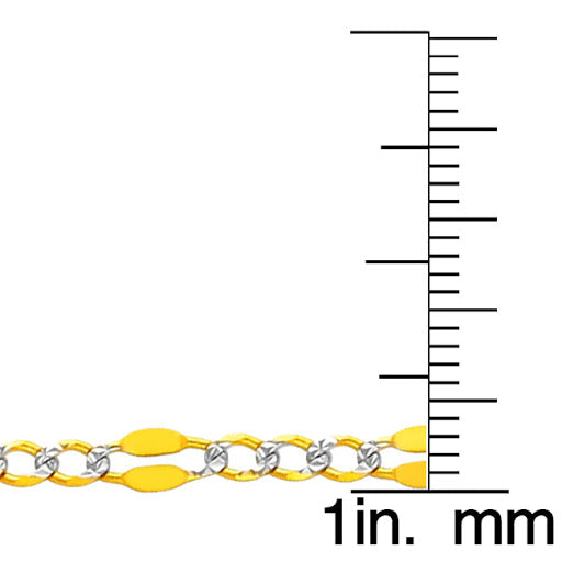 14k Two-tone Gold 3.7mm White Pave Stamped Figaro Unisex Chain Necklace