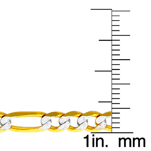 14k Two-tone Gold 4.6mm White Pave Light Figaro Unisex Chain Necklace