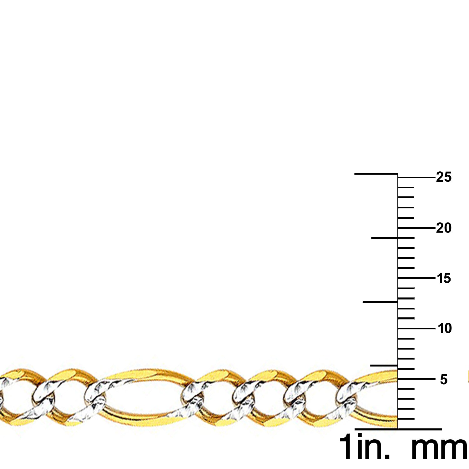 Dimaya 14k Two-tone Gold 5.6mm Wide Light White Pave Figaro Chain Necklace