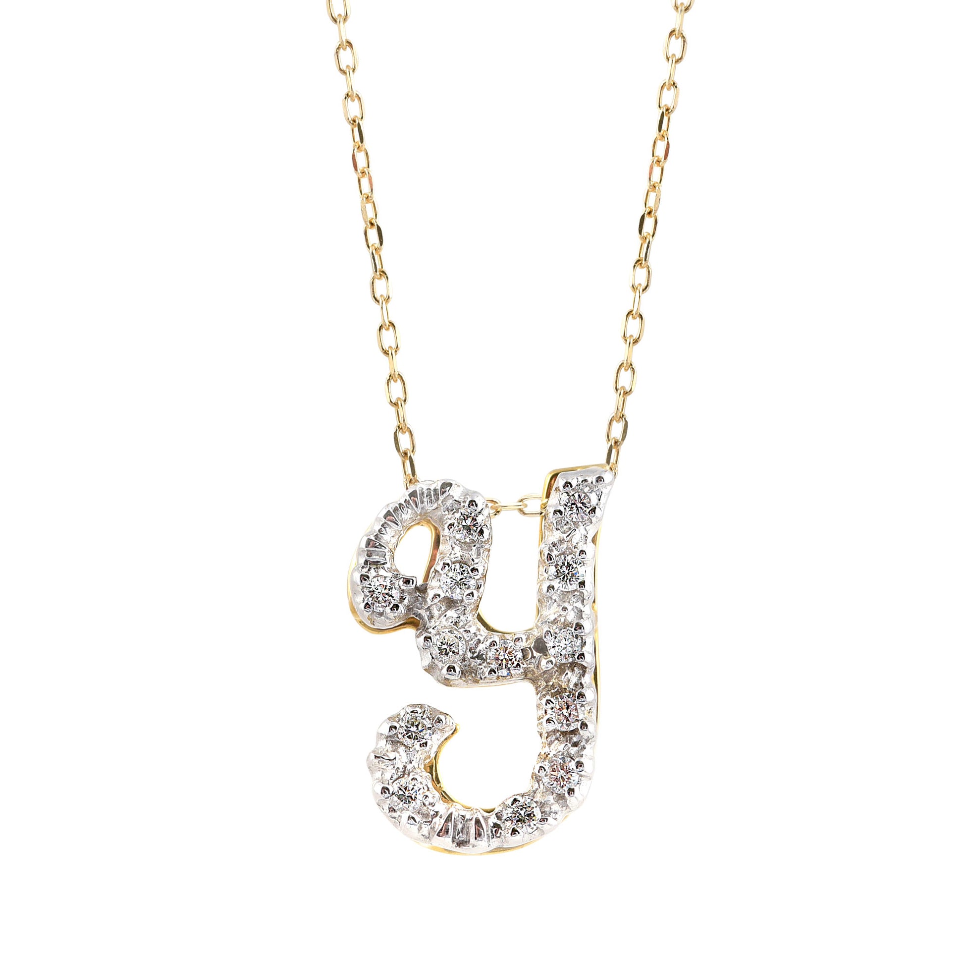 Dimaya 14K Two-tone Gold 0.13ct White Diamond Letter Y Initial Pendant Necklace