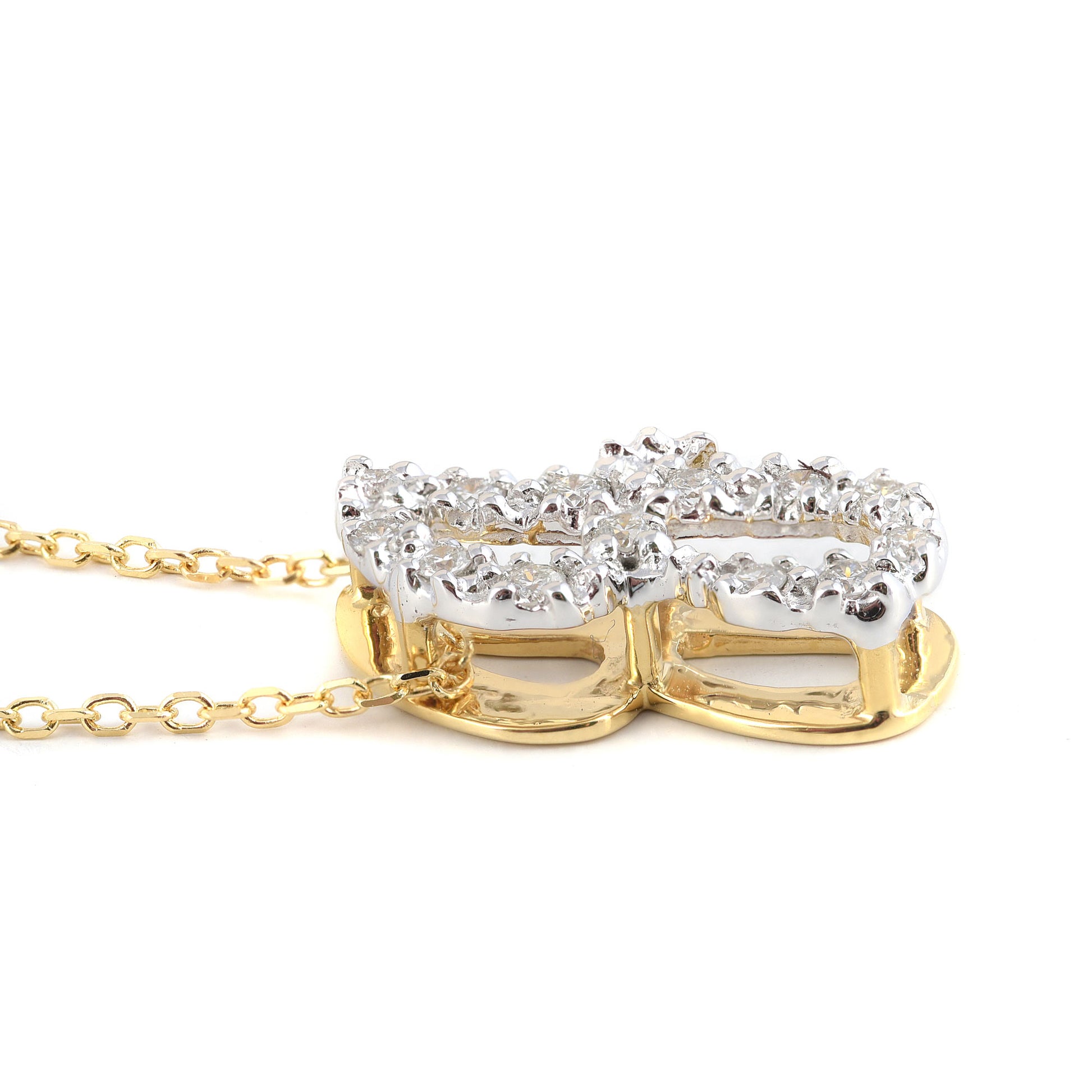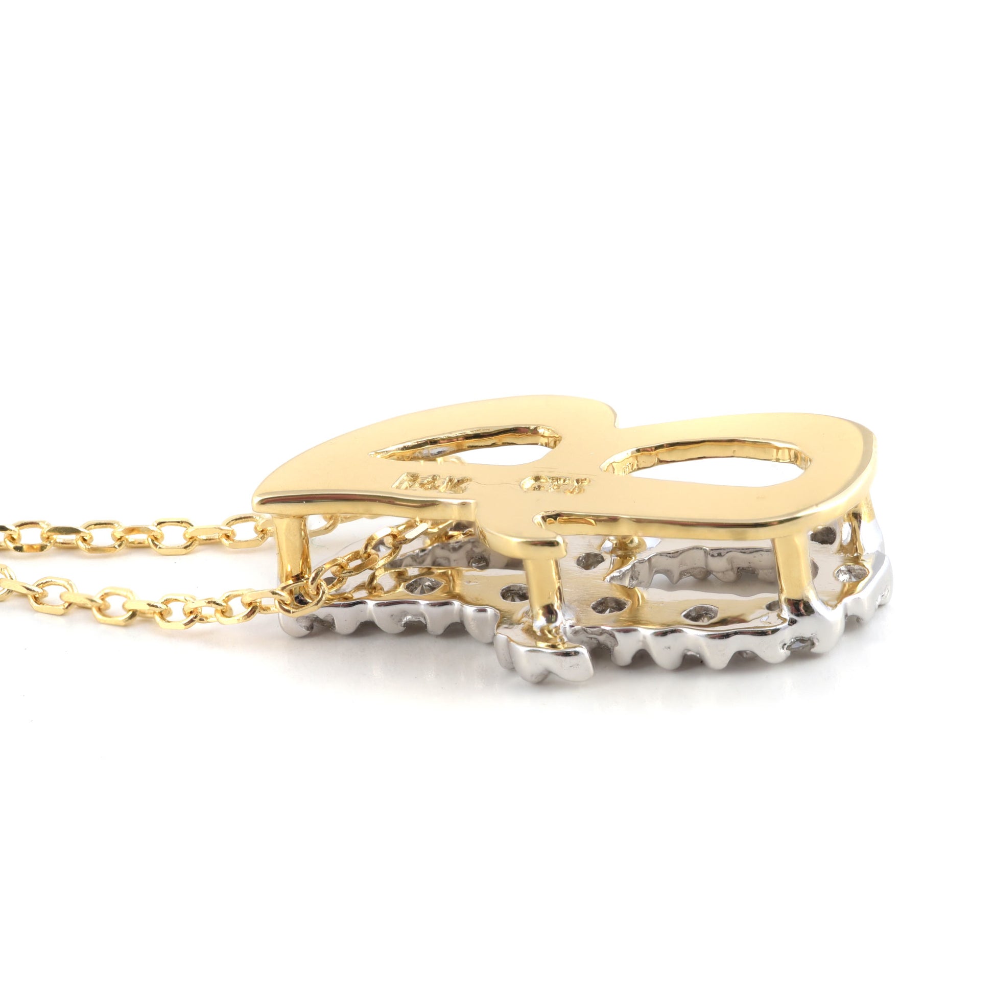Crafted of 14-karat yellow gold with white gold accents, this lovely intial pendant features a beautiful script letter 'J'. The pendant is lined with 0.15 carat TDW round-cut white diamonds to add extra dazzle to the design. The necklace is accompanied with a matching 18 inch chain and secures with a spring ring clasp.