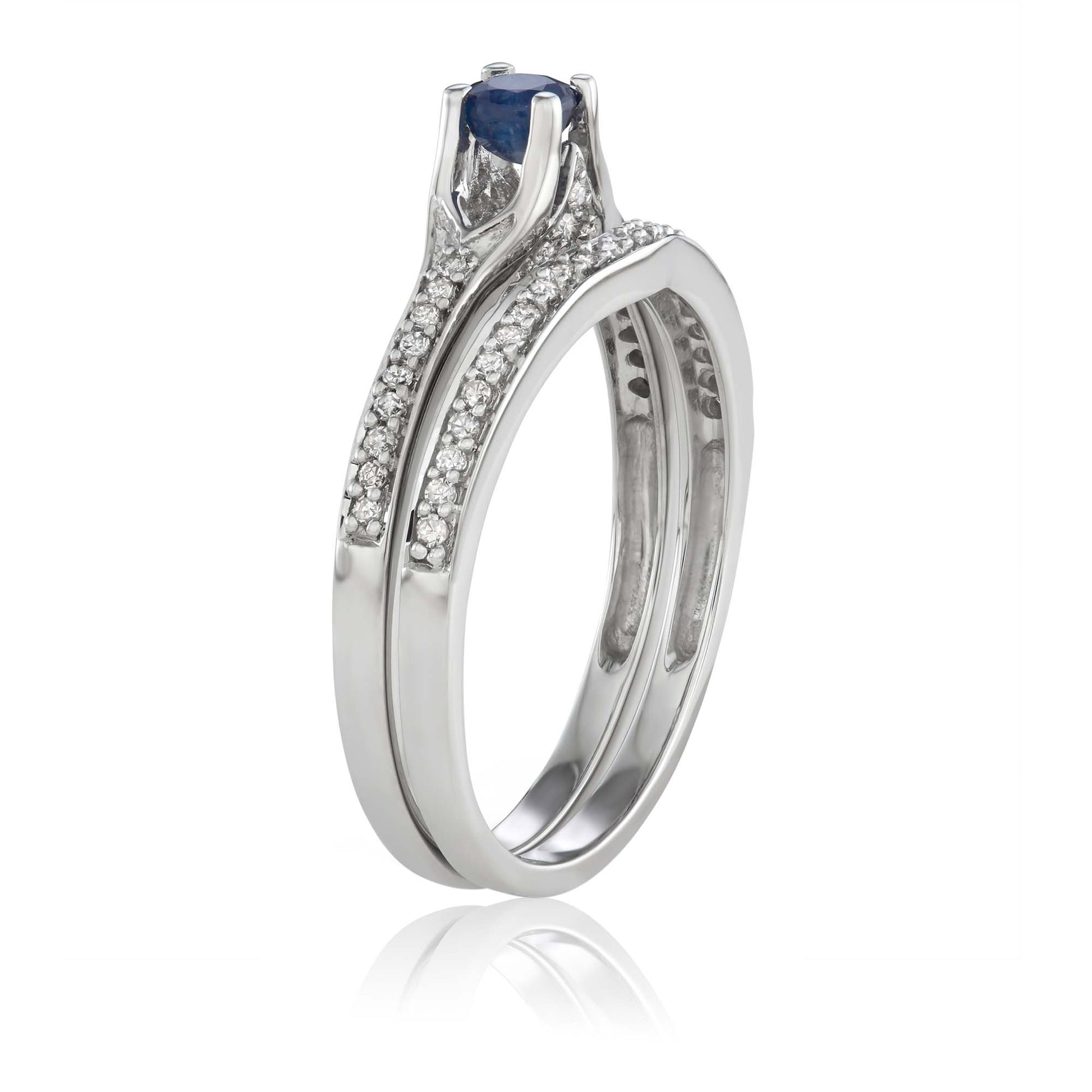 14K White Gold 0.50ct TW Sapphire and Diamond Bridal Set