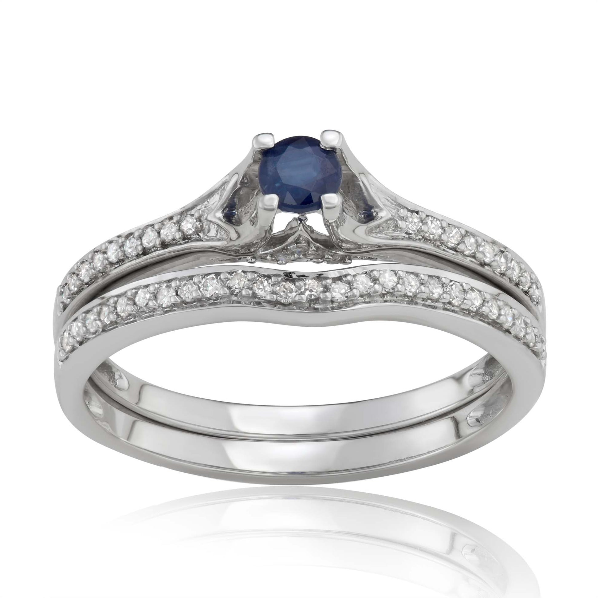 14K White Gold 0.50ct TW Sapphire and Diamond Bridal Set