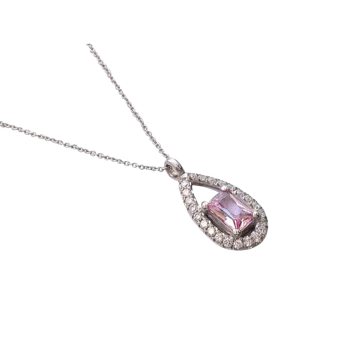 Dimaya 14k White Gold 0.74ct Padparadscha Sapphire and Diamond Pendant Necklace