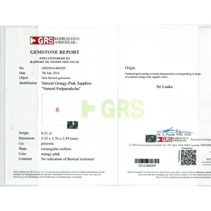 - 1 Princess Cut-shape natural Padparadscha Sapphire from Sri Lanka weighs 0.51 carats
