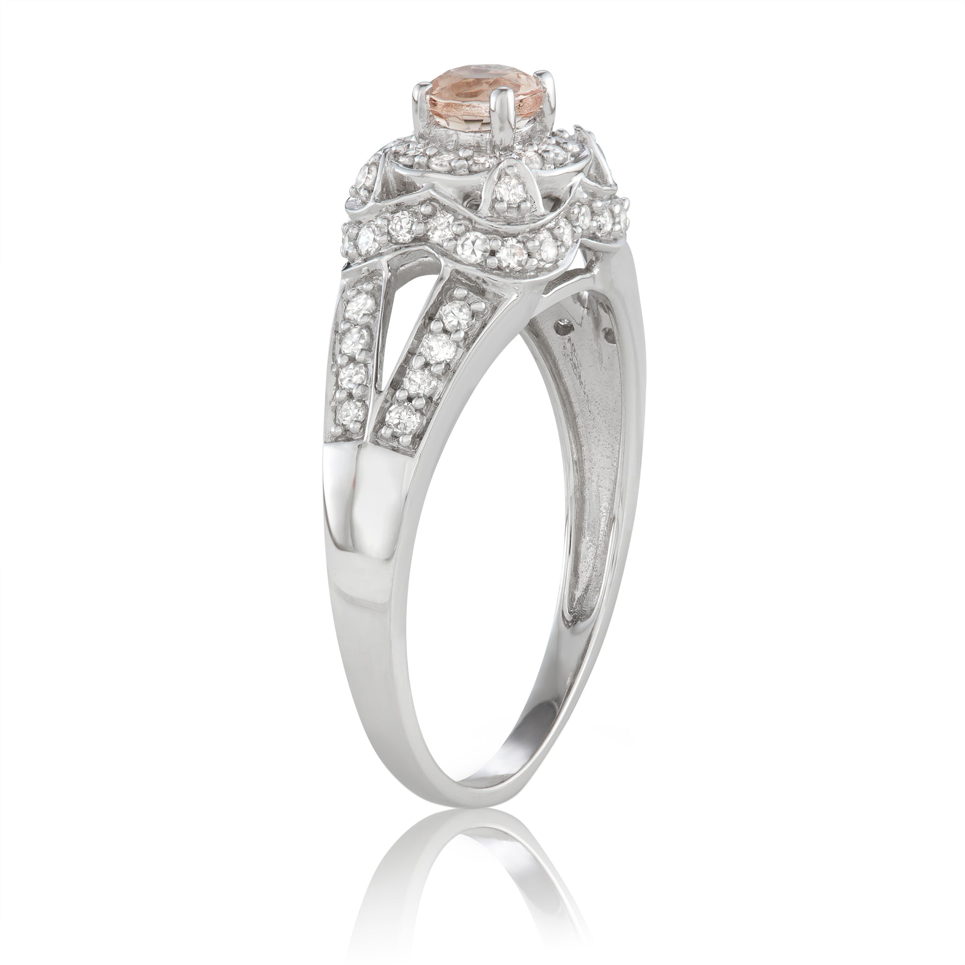 14K White Gold 1.00ct TW Morganite and White Diamond Engagement Ring