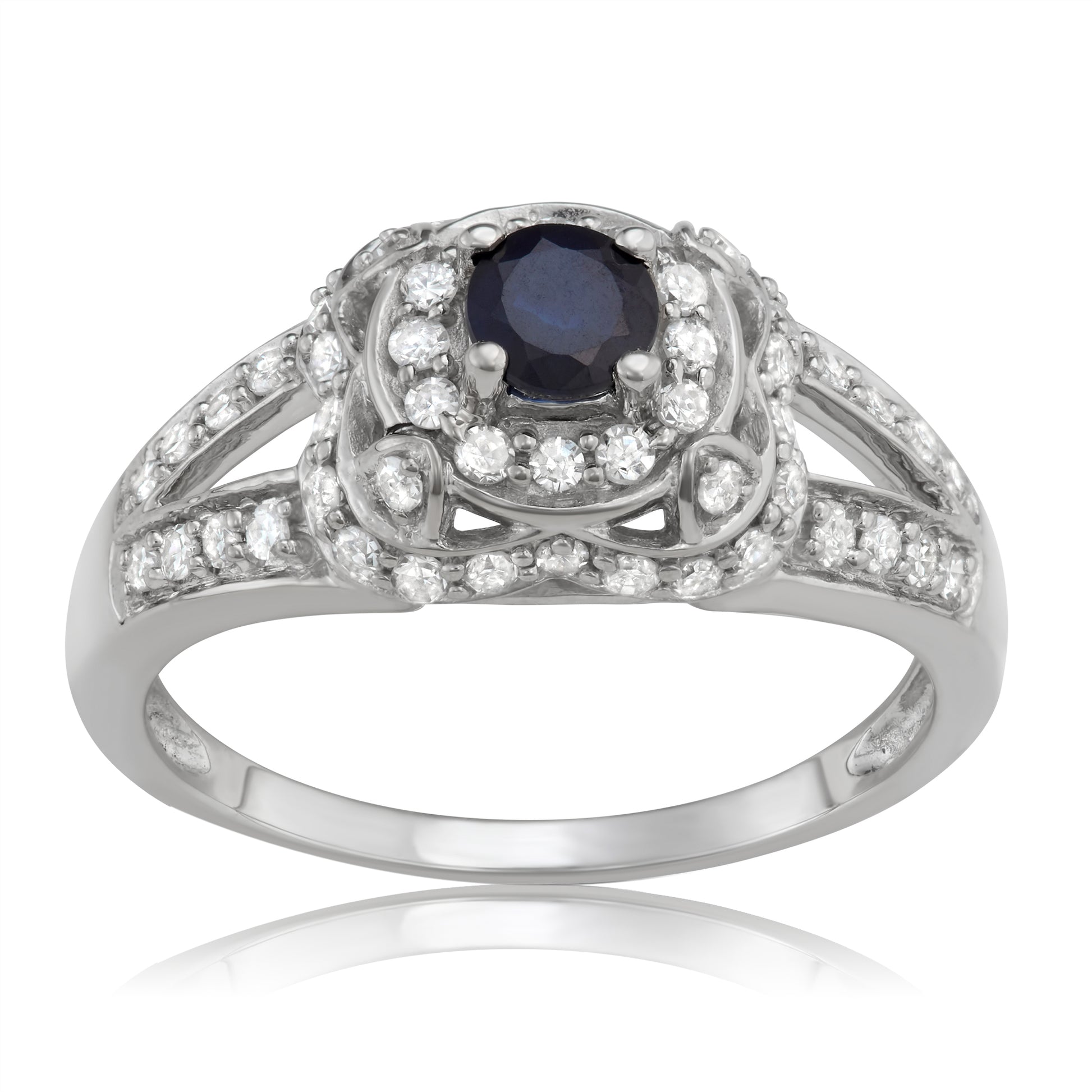 14K White Gold 1.00ct TW Sapphire and White Diamond Engagement Ring
