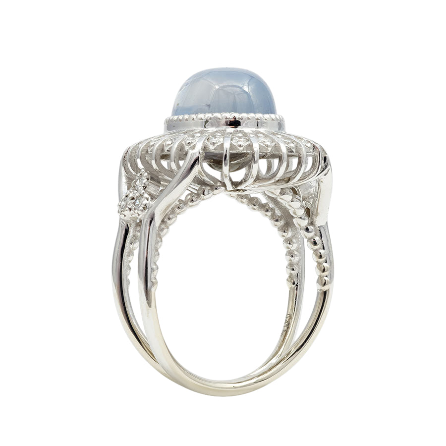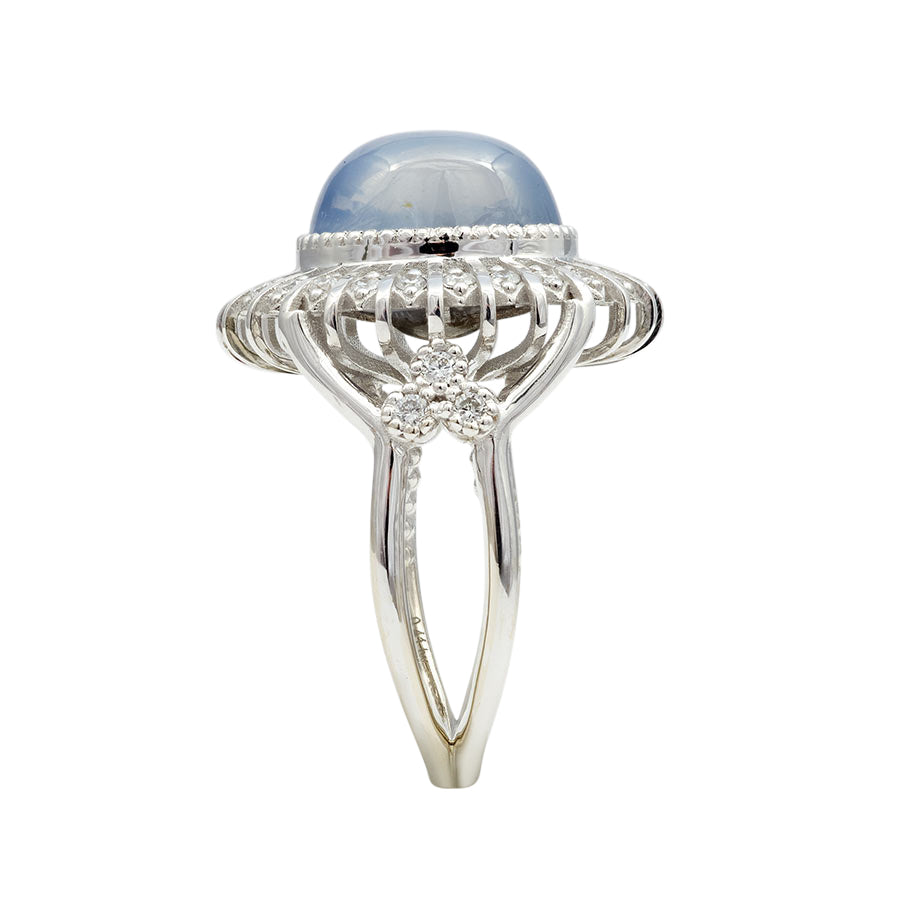 14k White Gold 10.47ct TGW Gray-Blue Star Sapphire and White Diamond Ring