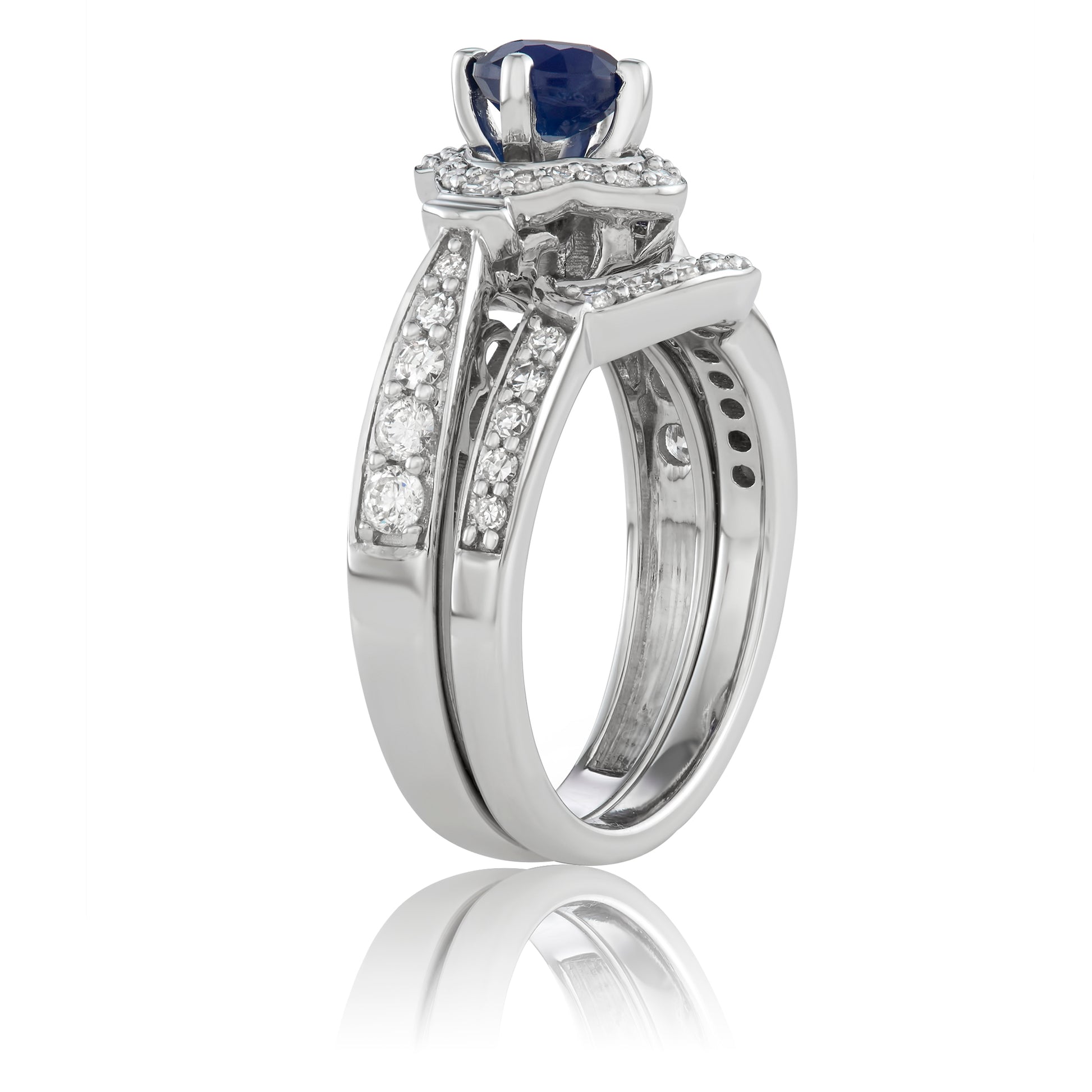14K White Gold 1ct TW Sapphire and Diamond Bridal Set
