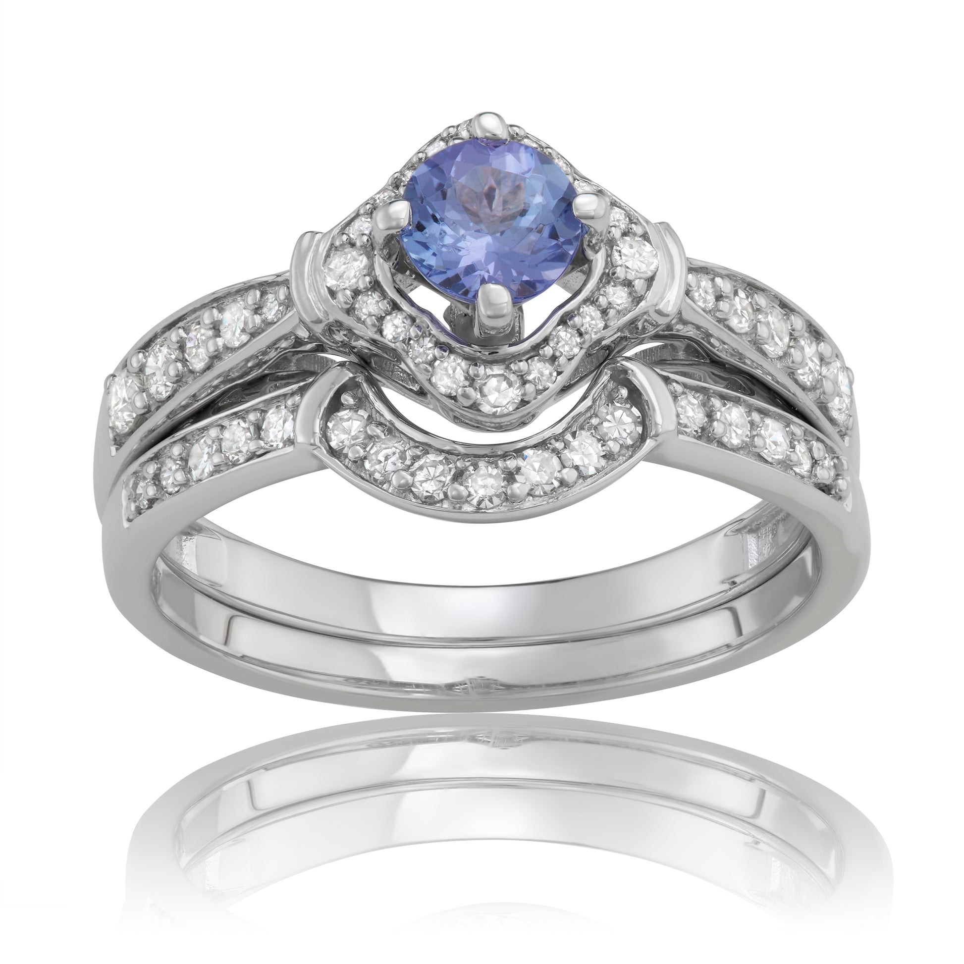 14K White Gold 1ct TW Tanzanite and Diamond Bridal Set
