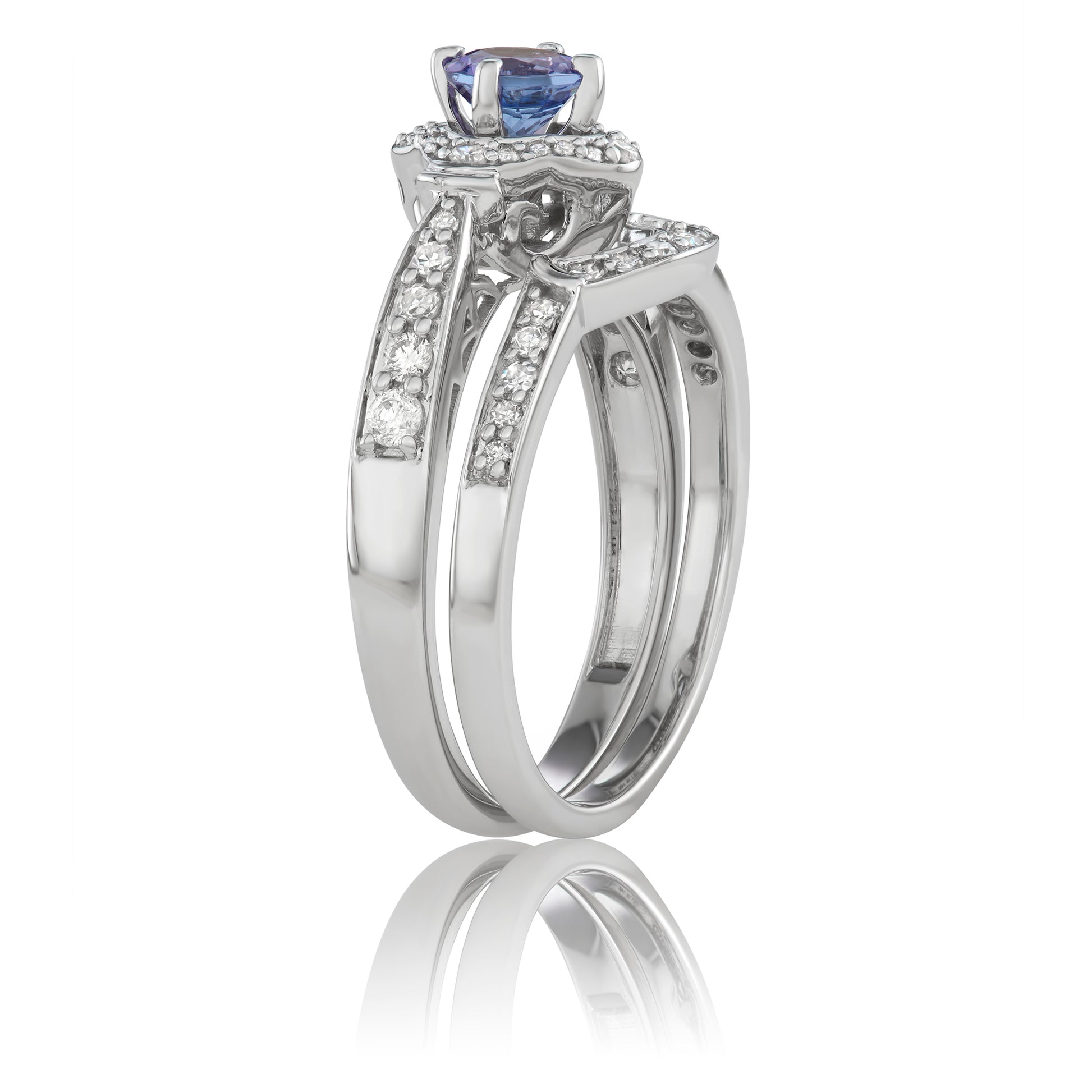 14K White Gold 1ct TW Tanzanite and Diamond Bridal Set
