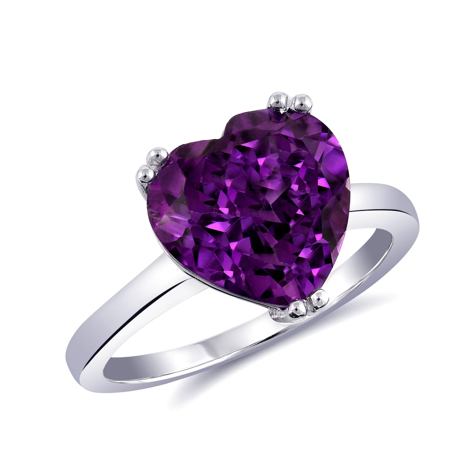 The Greeks and Egyptians considered Amethysts a sacred stone. Tibetans also cherish the Amethysts and make prayer beads from the gem. This Genuine Amethyst ring is exquisite and has a vivid natural purple color. It is 4.01 carats in size and cut to a 11.2 x 11 mm perfect heart shape. The Amethyst is set in a 14K white gold double prong design. The ring is a one of a kind design created specifically for this exact gemstone. Comes in a fine jewelry box with free shipping and a Risk Free 30-Day Money Back Guarantee!