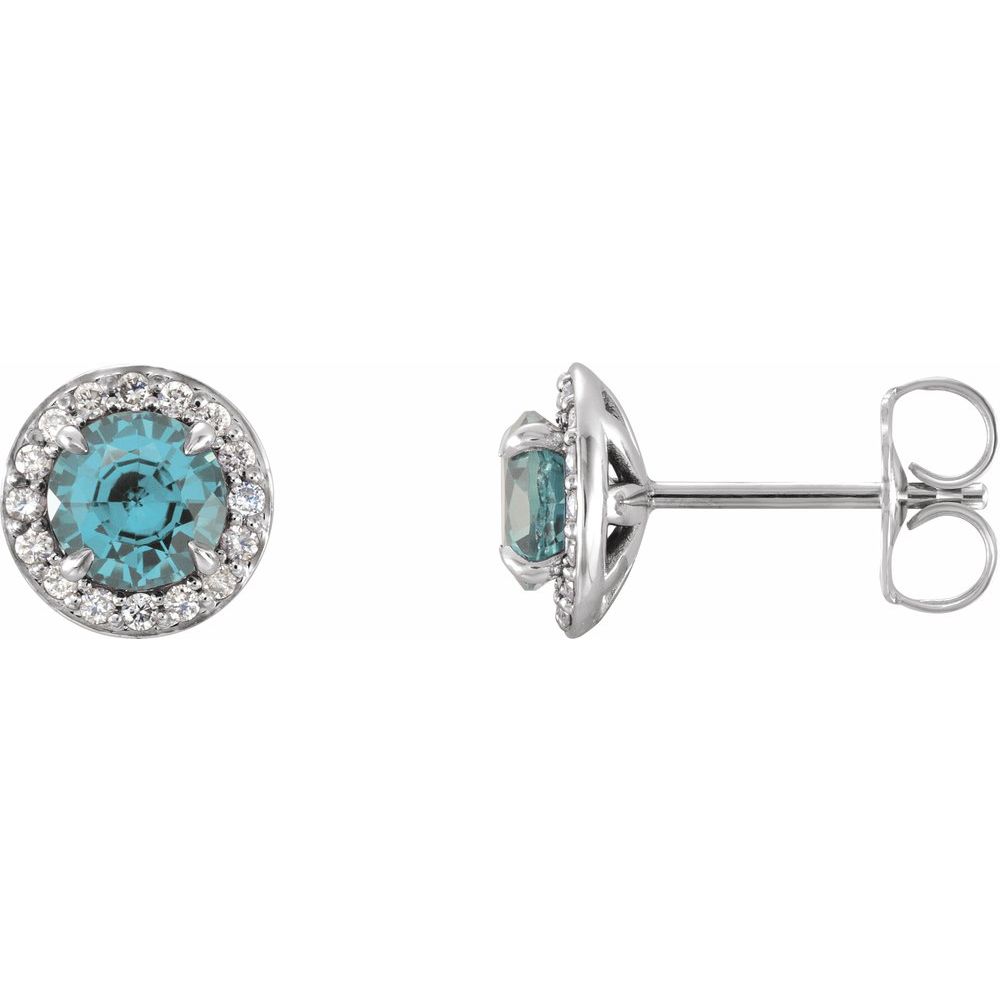 14k White Gold 5 mm Natural Aquamarine & 1/8 CTW Natural Diamond Earrings