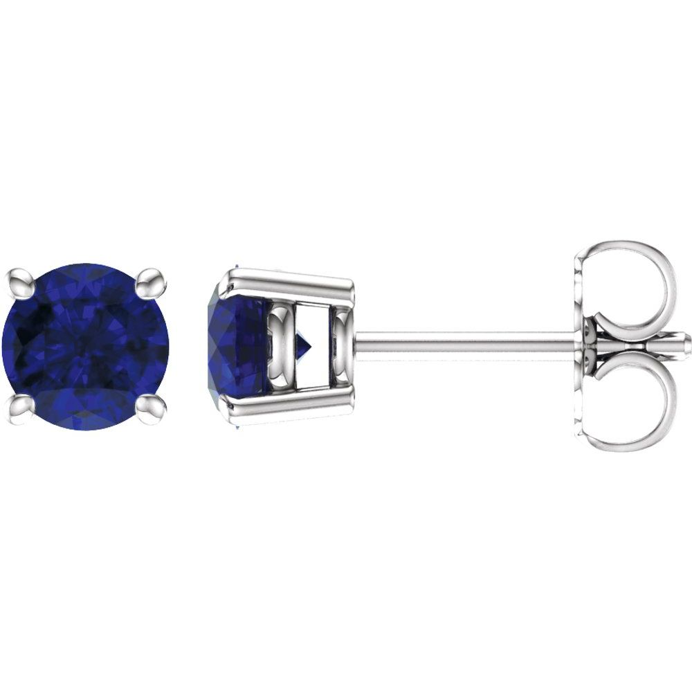 14k White Gold 5 mm Natural Blue Sapphire Stud Earrings