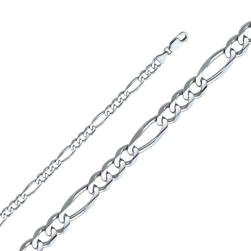 Designed in genuine 14-karat white gold, this Figaro chain features a 3 round links and 1 elongated link design. Each link features a concave design for smooth and comfortable wear. This Figaro chain measures 6 mm wide, making this a perfect size for men's wear. The bracelet measures 8 inches long and secures in a lobster claw clasp.Crafted of 14k White gold