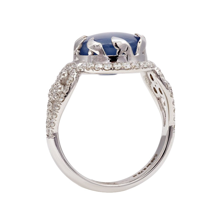 14K White Gold 7.36ct TGW Star Sapphire and Diamond One-of-a-Kind Ring