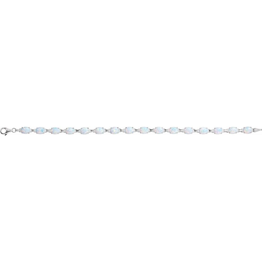 14k White Gold Lab-Grown White Opal Line 7" Bracelet