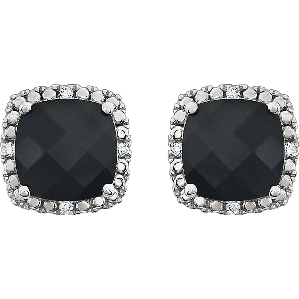14k White Gold Natural Black Onyx & .06 CTW Natural Diamond Earrings