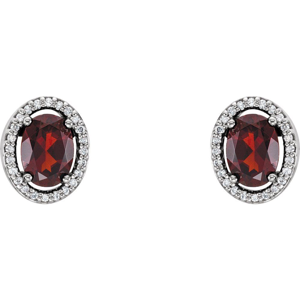14k White Gold Natural Mozambique Garnet & 1/8 CTW Natural Diamond Earrings