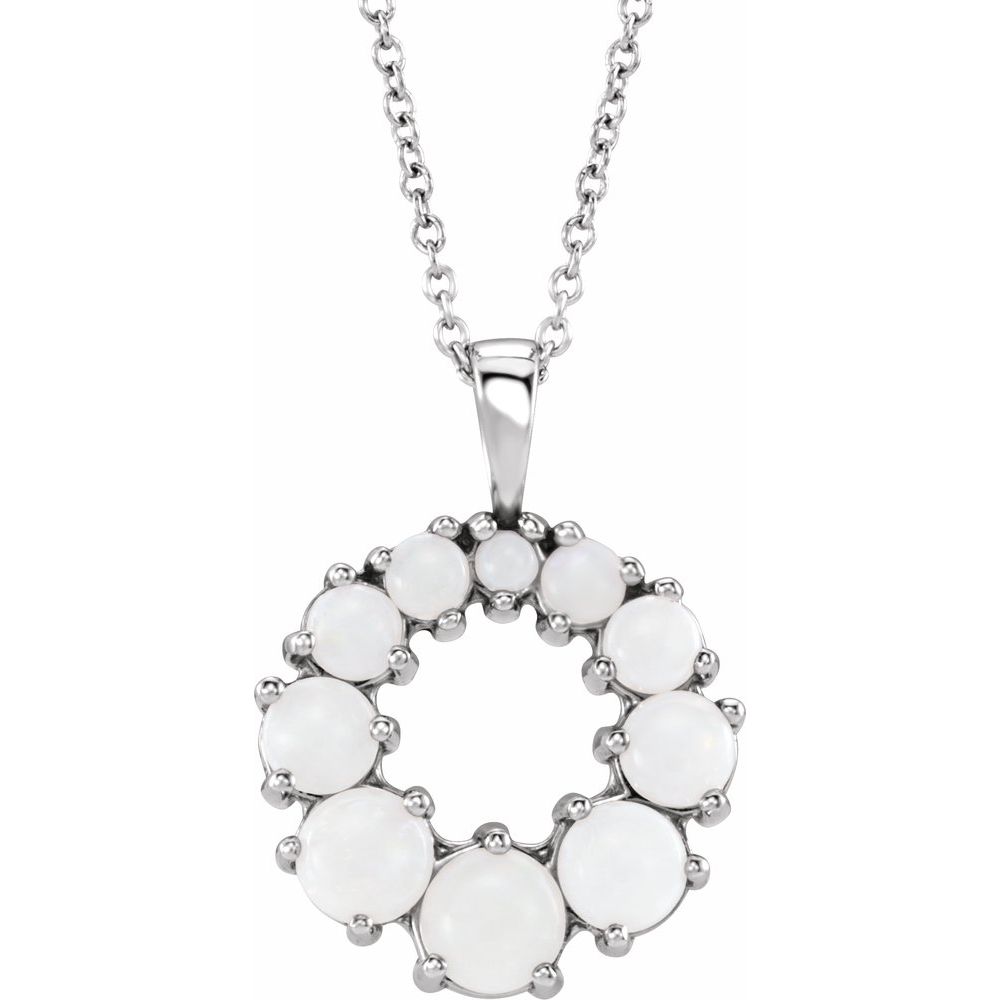 14k White Gold Natural Opal Halo-Style 18" Necklace