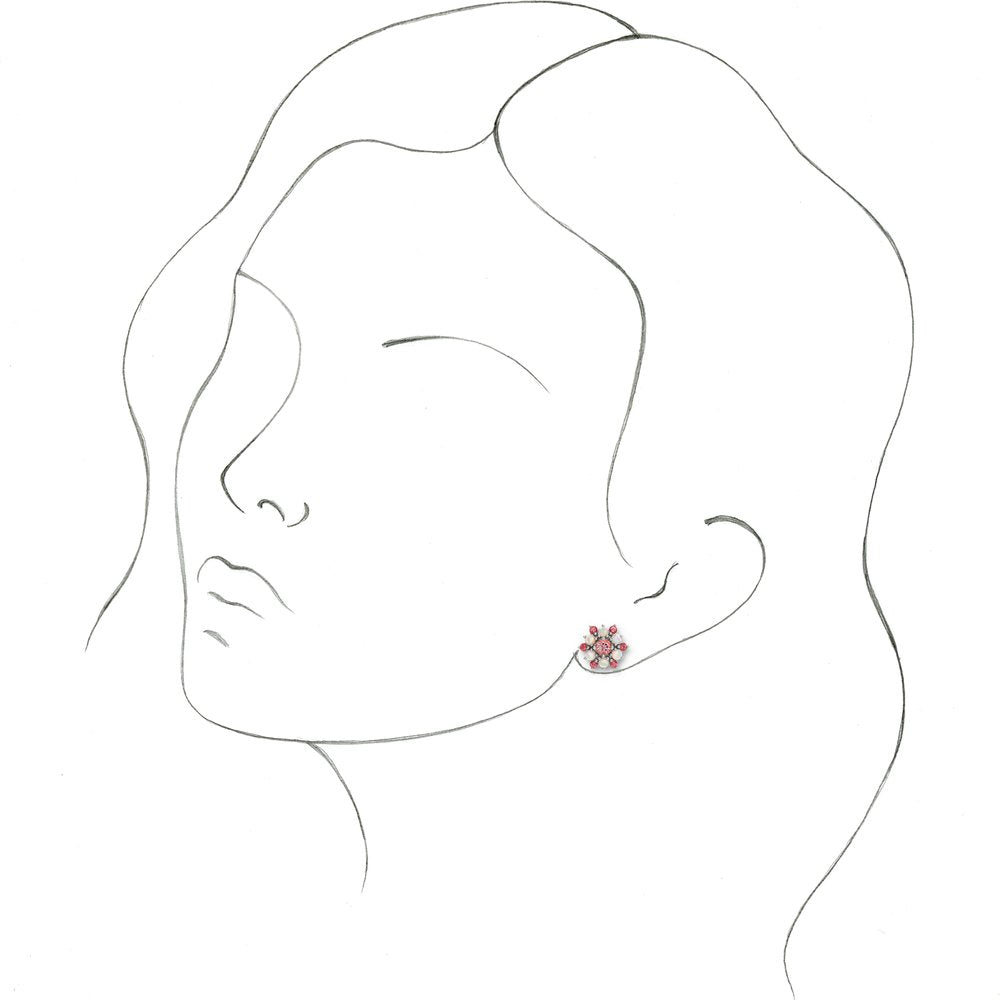 14k White Gold Natural Pink Tourmaline & Natural Ethiopian Opal Cabochon Earrings