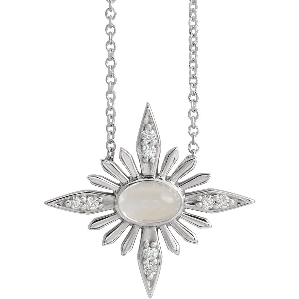 14k White Gold Natural Rainbow Moonstone & .08 CTW Natural Diamond Celestial 16-18" Necklace