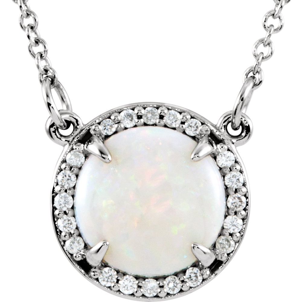 14k White Gold Natural White Opal & .05 CTW Natural Diamond 16" Necklace
