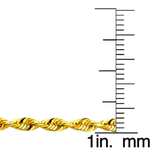 Dimaya 14k Yellow Gold 3mm Light Diamond-cut Solid Rope Unisex Chain Necklace