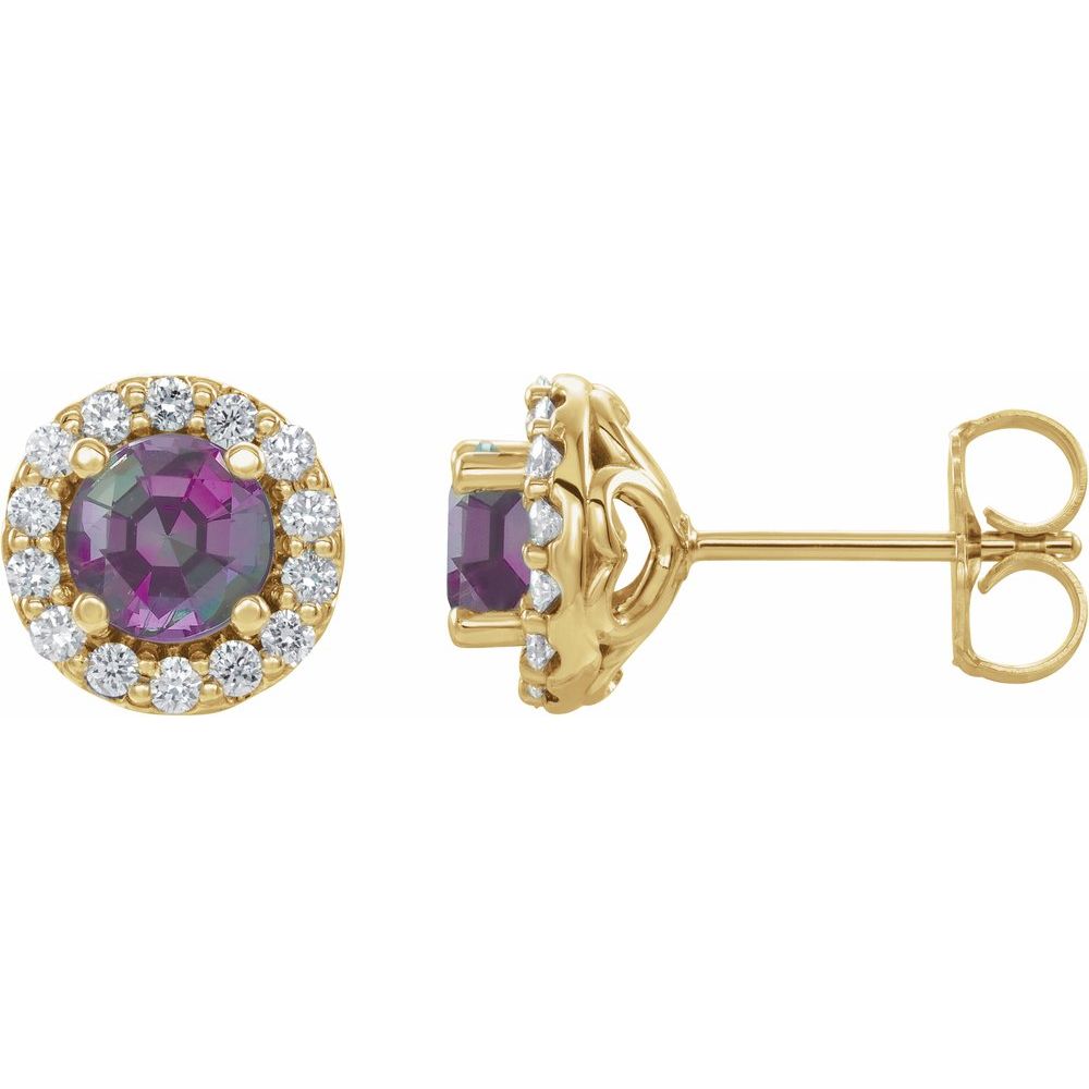 14k Yellow Gold 4 mm Lab-Grown Alexandrite & 1/8 CTW Natural Diamond Earrings