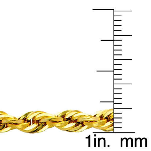 14k Yellow Gold 5mm Silky Diamond-cut Hollow Rope Unisex Chain Necklace