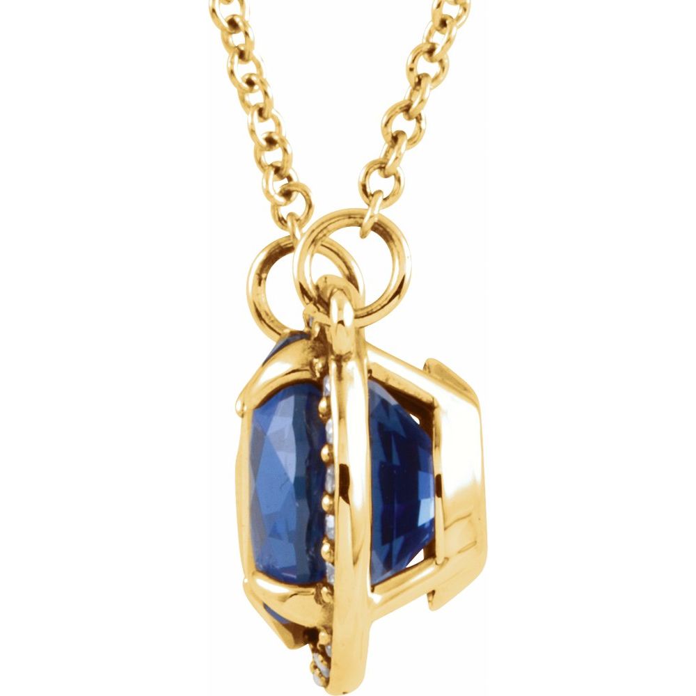 14k Yellow Gold 8 mm Lab-Grown Blue Sapphire & .05 CTW Natural Diamond 16" Necklace