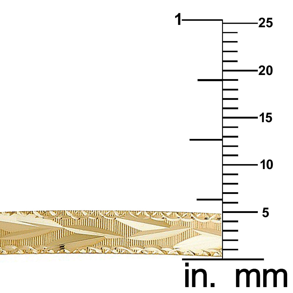 Radiating timeless elegance, this stunning solid bangle bracelet is a masterpiece of luxurious 14-karat gold, adorned with a mesmerizing leaf design that captures the essence of nature. Crafted from radiant yellow gold, this bracelet is available in two alluring lengths—7 inches or 8 inches—and boasts a graceful width of 5mm. The intricate leaf motif weaves a story of sophistication, making it a perfect companion for both everyday wear and special occasions.