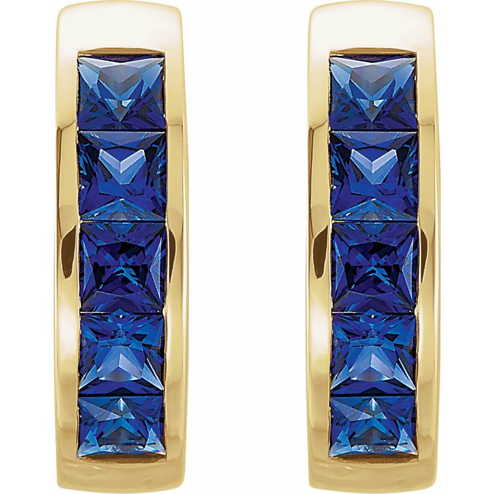 14k Yellow Gold Lab-Grown Blue Sapphire Hoop Earrings