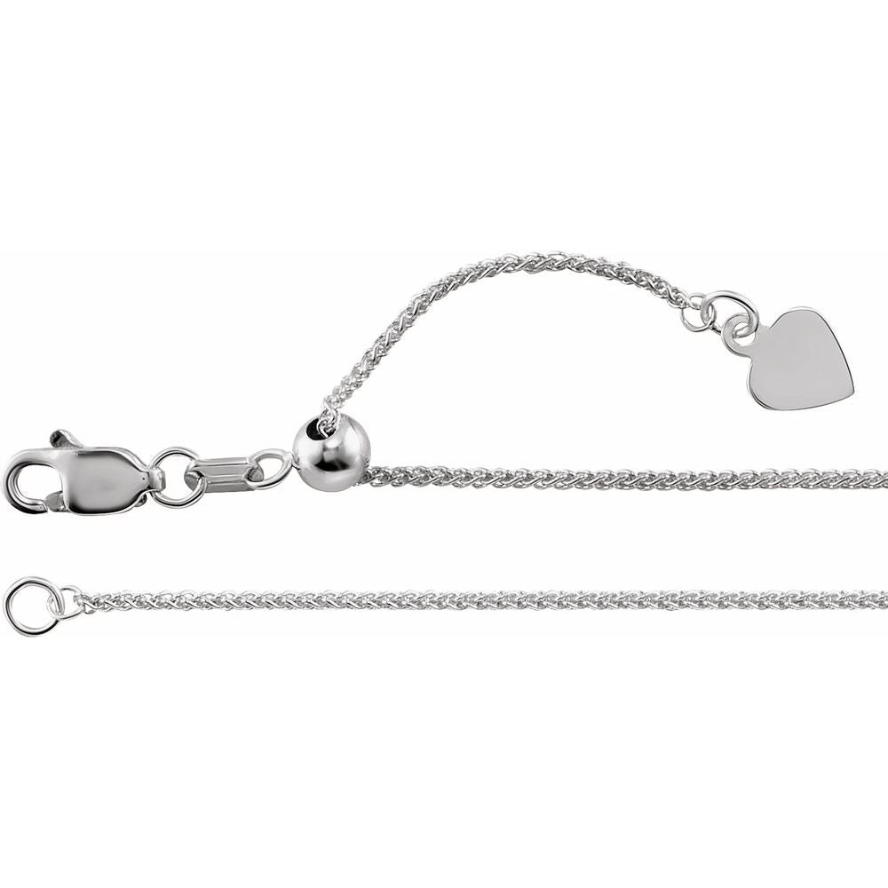 14K Yellow or White Gold 1 mm Adjustable Wheat 16-22" Chain