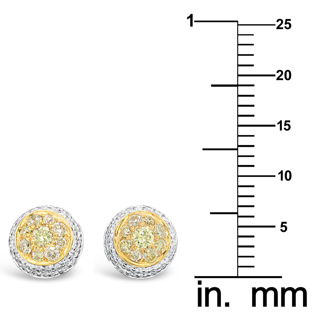 18k Two-tone Gold 5/8ct TDW Fancy Yellow and White Diamond Round Cluster Stud Earrings