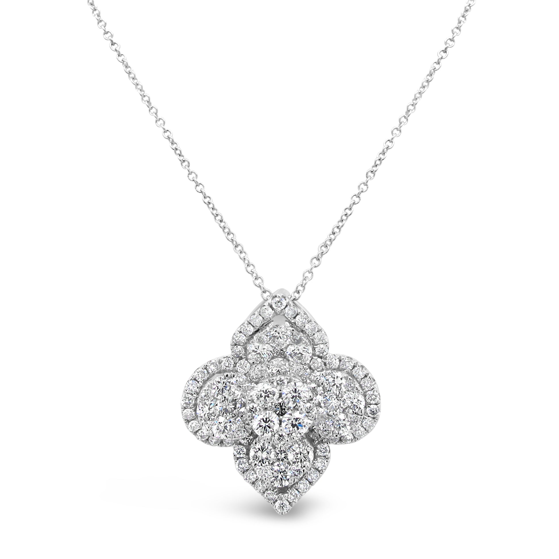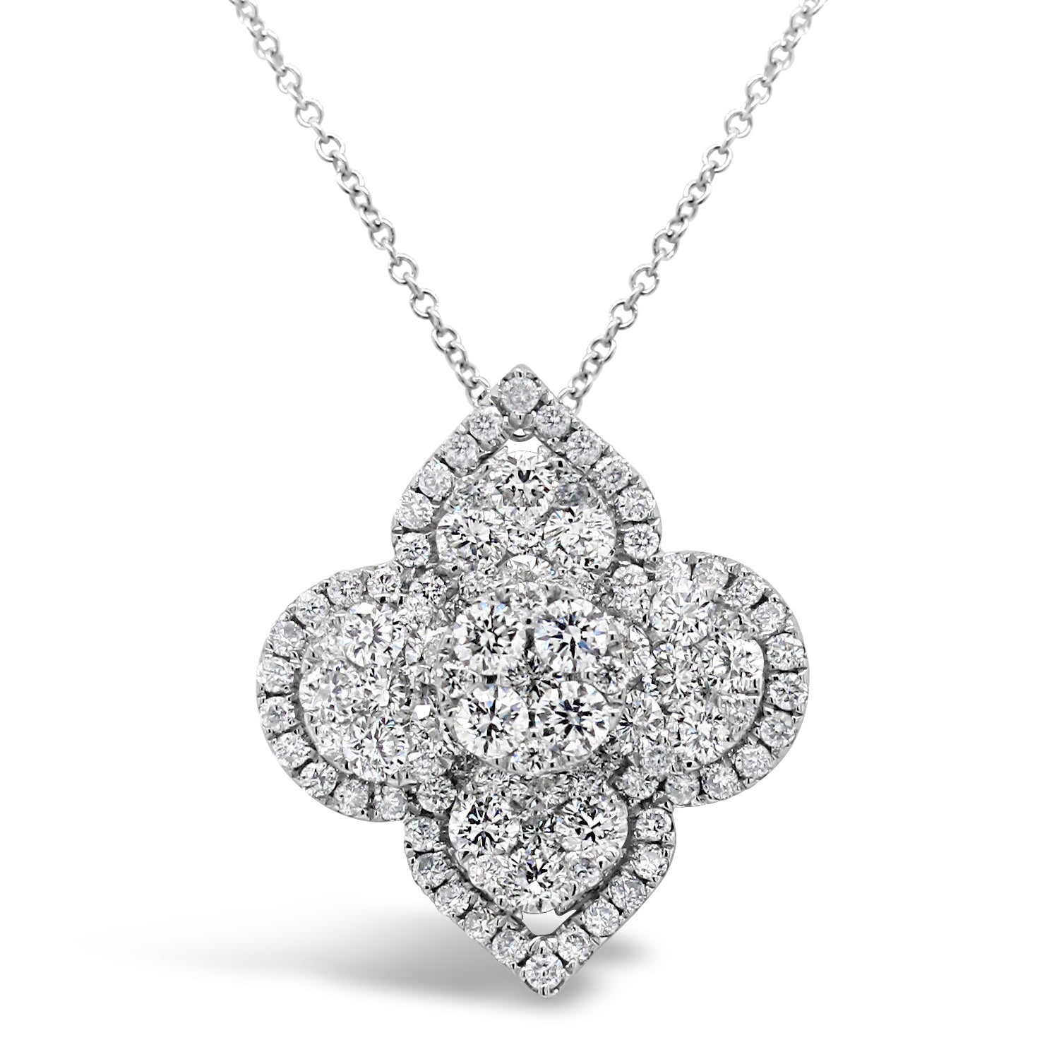 18k White Gold 1 1/4ct White Diamond Floral Pendant Necklace