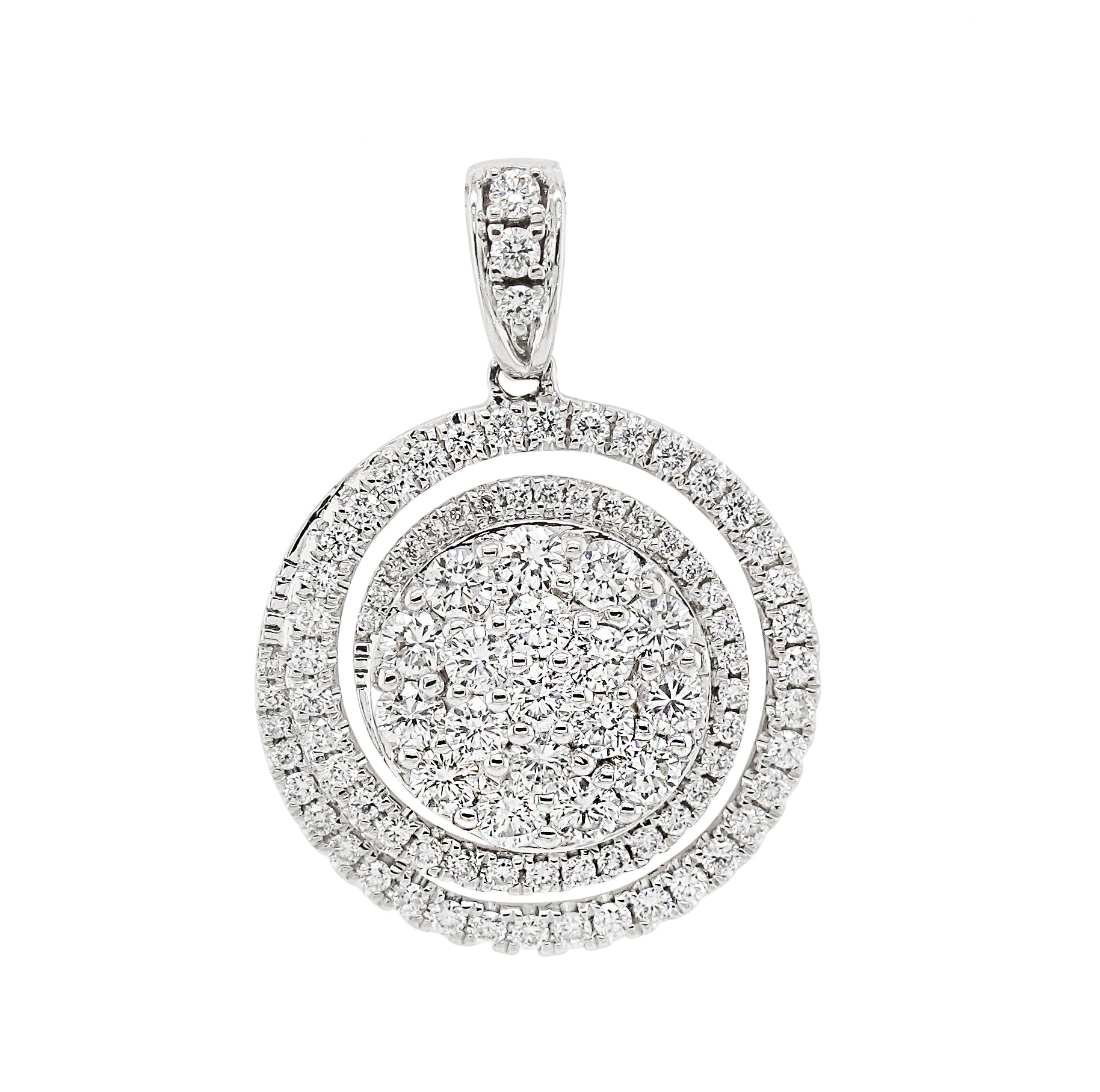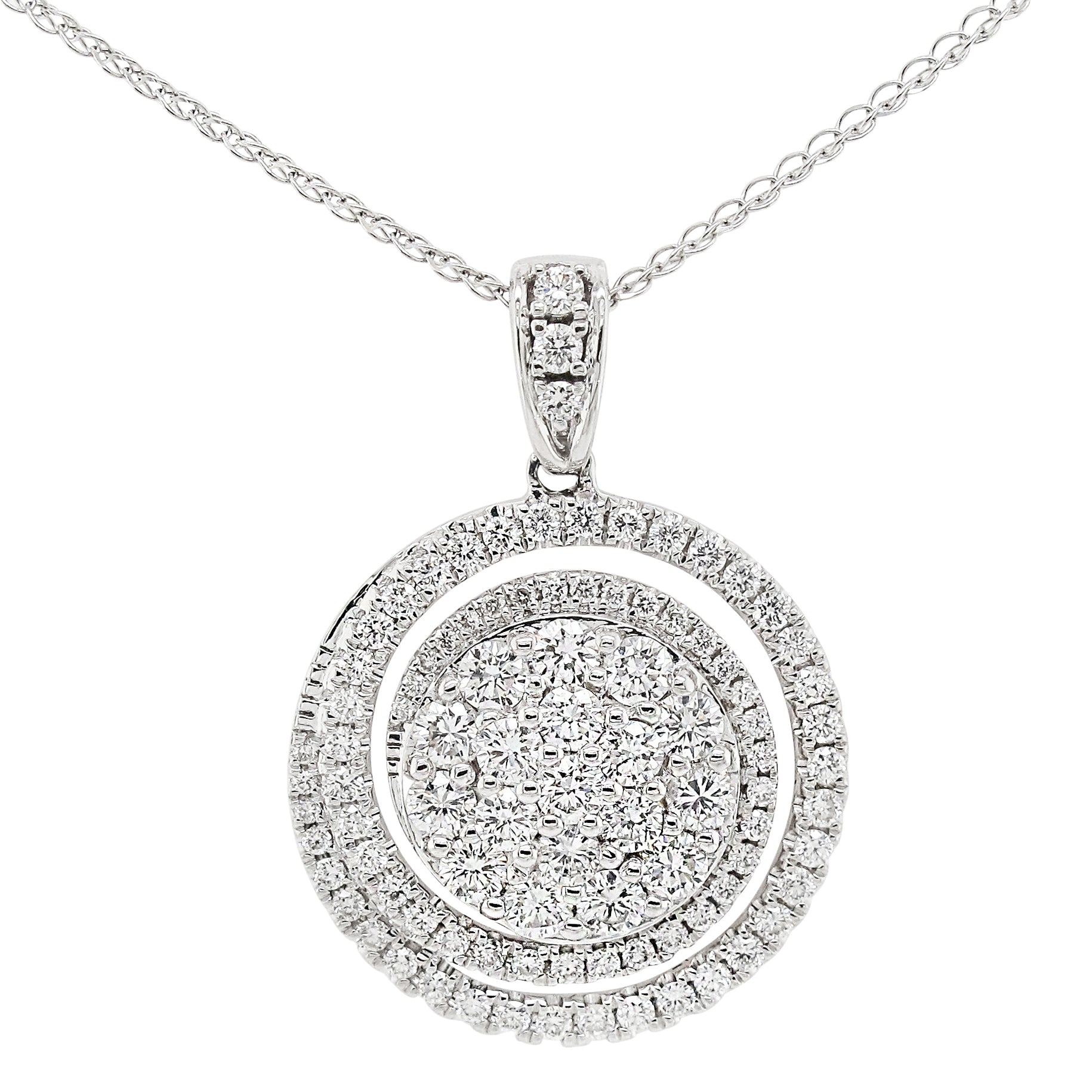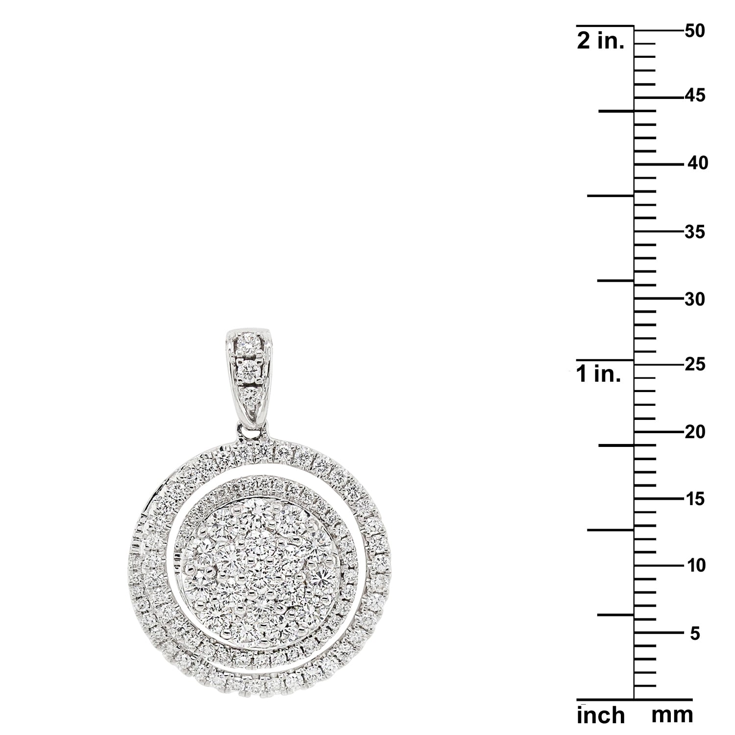 Dimaya 18k White Gold 1-3/8ct White Diamond Round Swirl Pendant Necklace