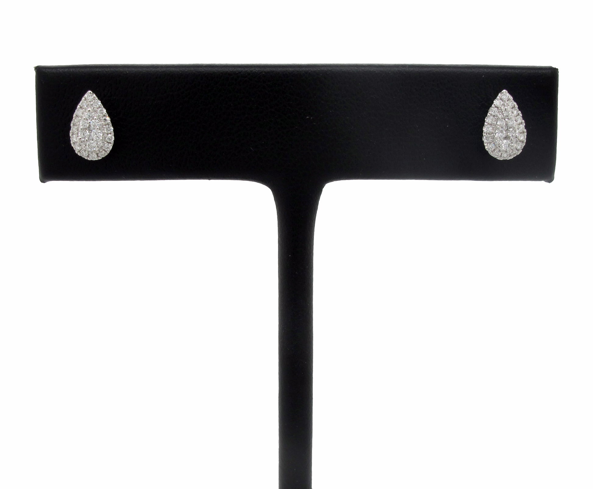 Designed in 18-karat white gold this pear shaped cluster stud earrings feature 1/5 carat TDW of round-cut white diamonds. The pear shape features a halo design around the center cluster. Each ethically mined diamond is hand selected to fit this earrings creating a unique one of a kind design.Earring details: