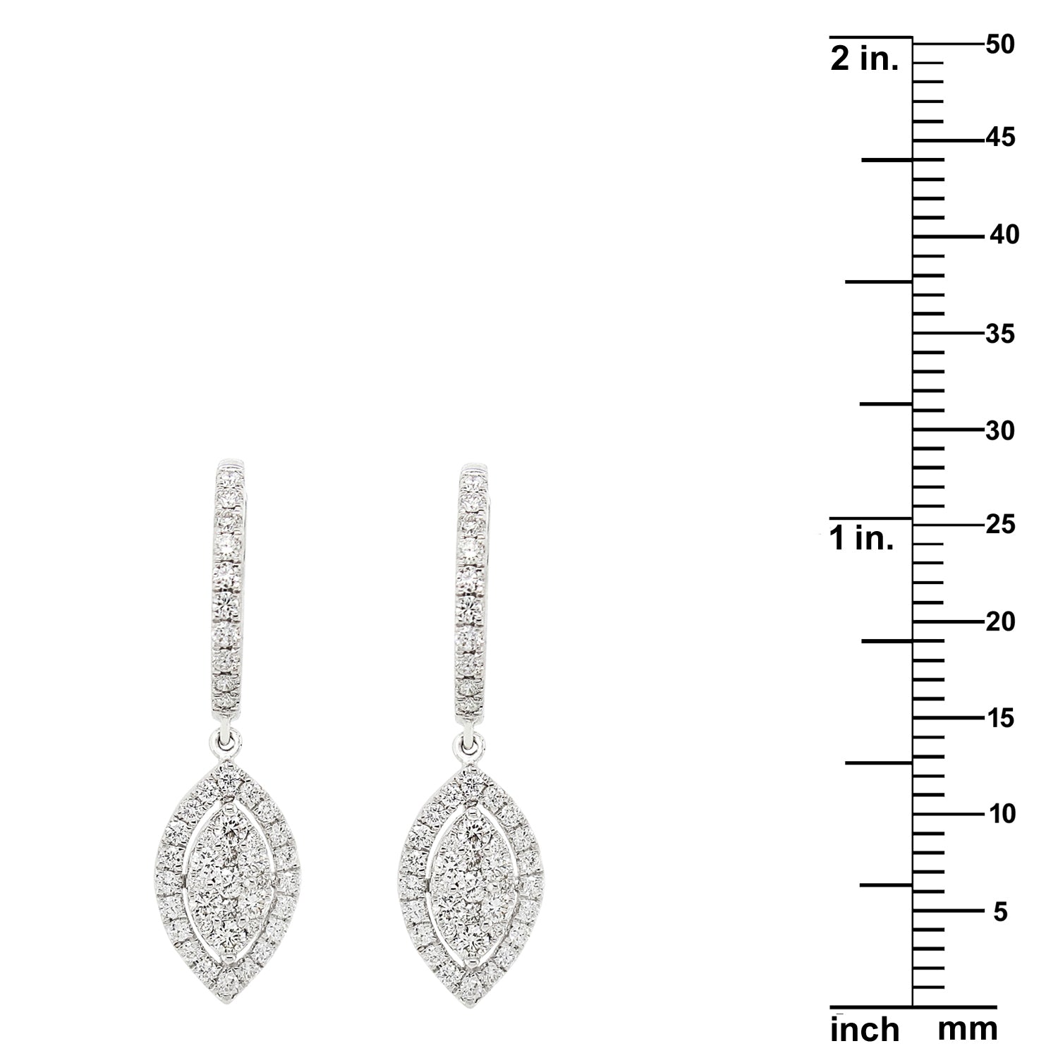 18k White Gold 1ct TDW White Diamond Dangling Tear Drop Hoop Earrings