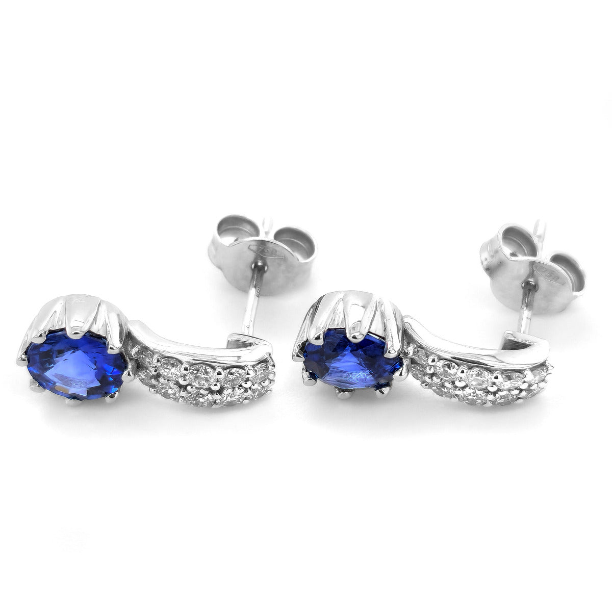 18K White Gold 2.12ct TGW Blue Sapphire and Diamond One-of-a-Kind Earrings