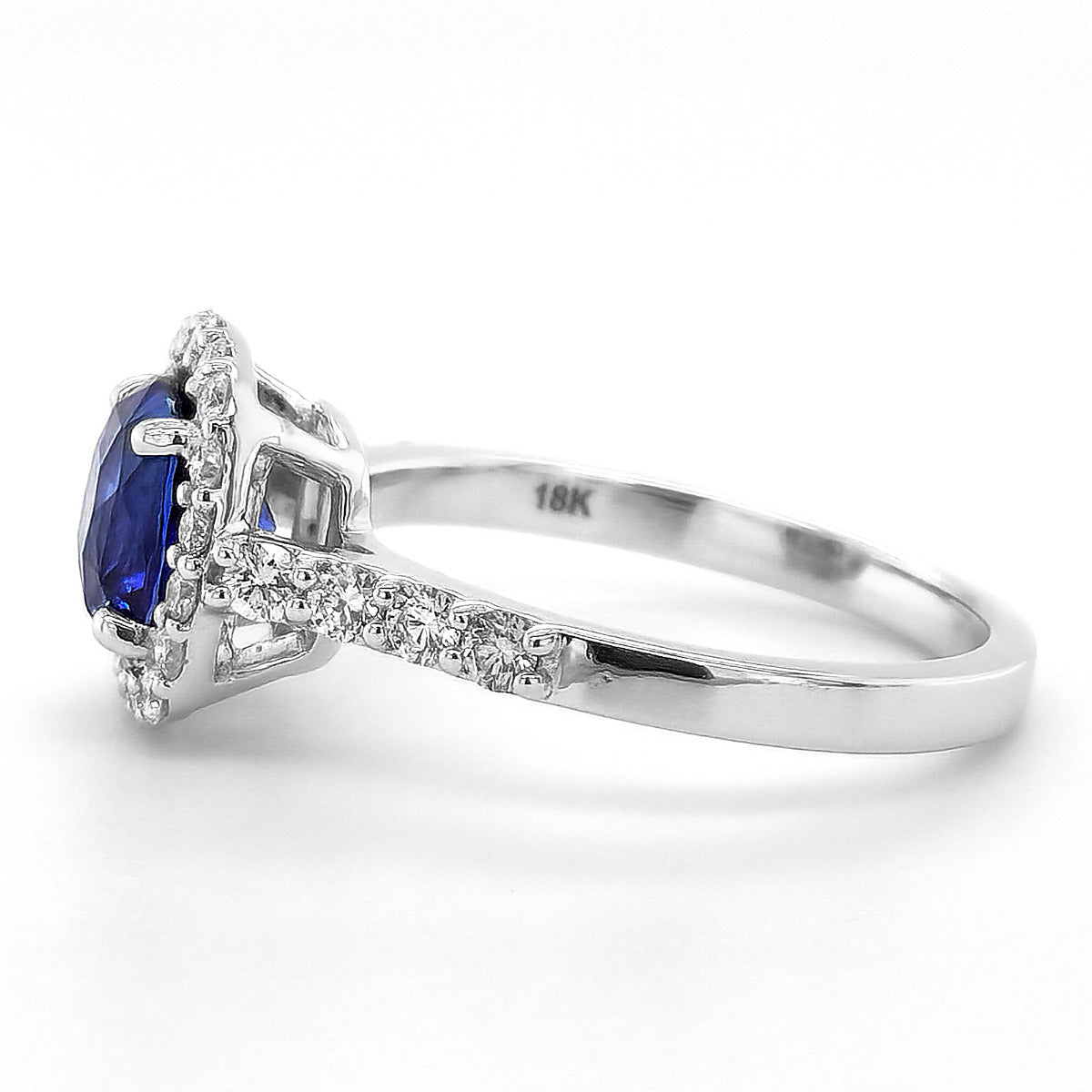 It is rare to find and cushion cut Sapphire that radiates such an intense blue. Set with a diamond halo that does not fail to add a dash of additional luster to the 18K white gold ring, she will no doubt fall instantly in love with this ring. Perfect for a modern woman who is independent and likes a little symmetry, this piece will have her feeling weak at the knees.