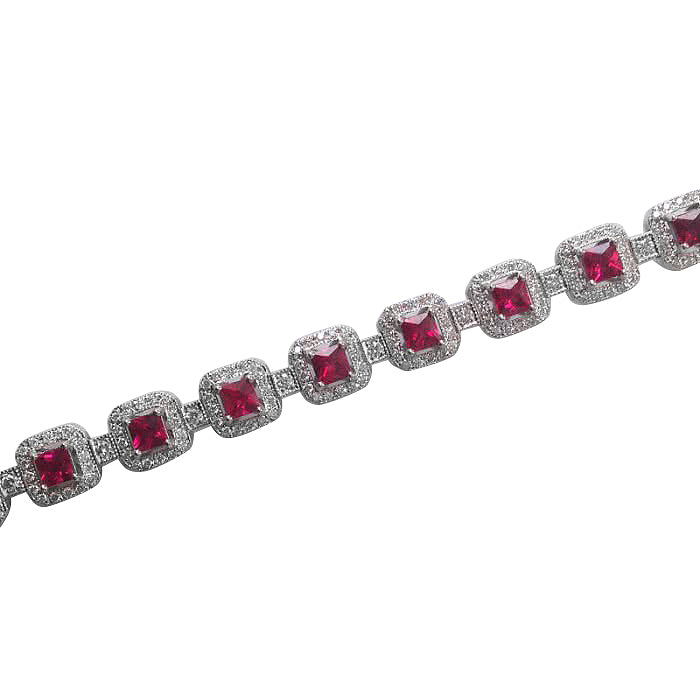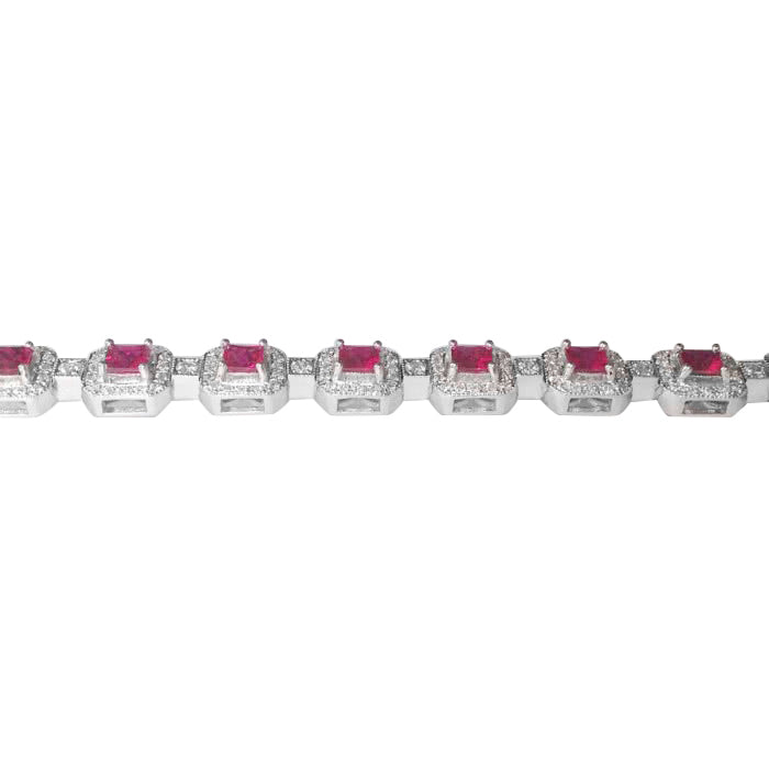 Dimaya 18k White Gold 5.73ct Ruby and White Diamond Tennis Bracelet