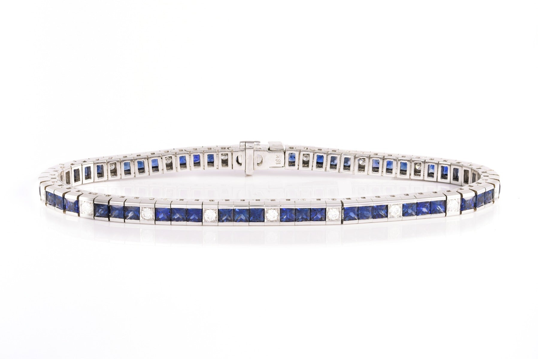 18K White Gold 6.28ct TGW Square-cut Blue Sapphire and Diamond Bracelet