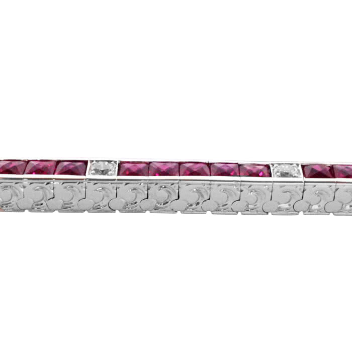 Dimaya 18k White Gold 7.25ct Ruby and White Diamond Tennis Bracelet